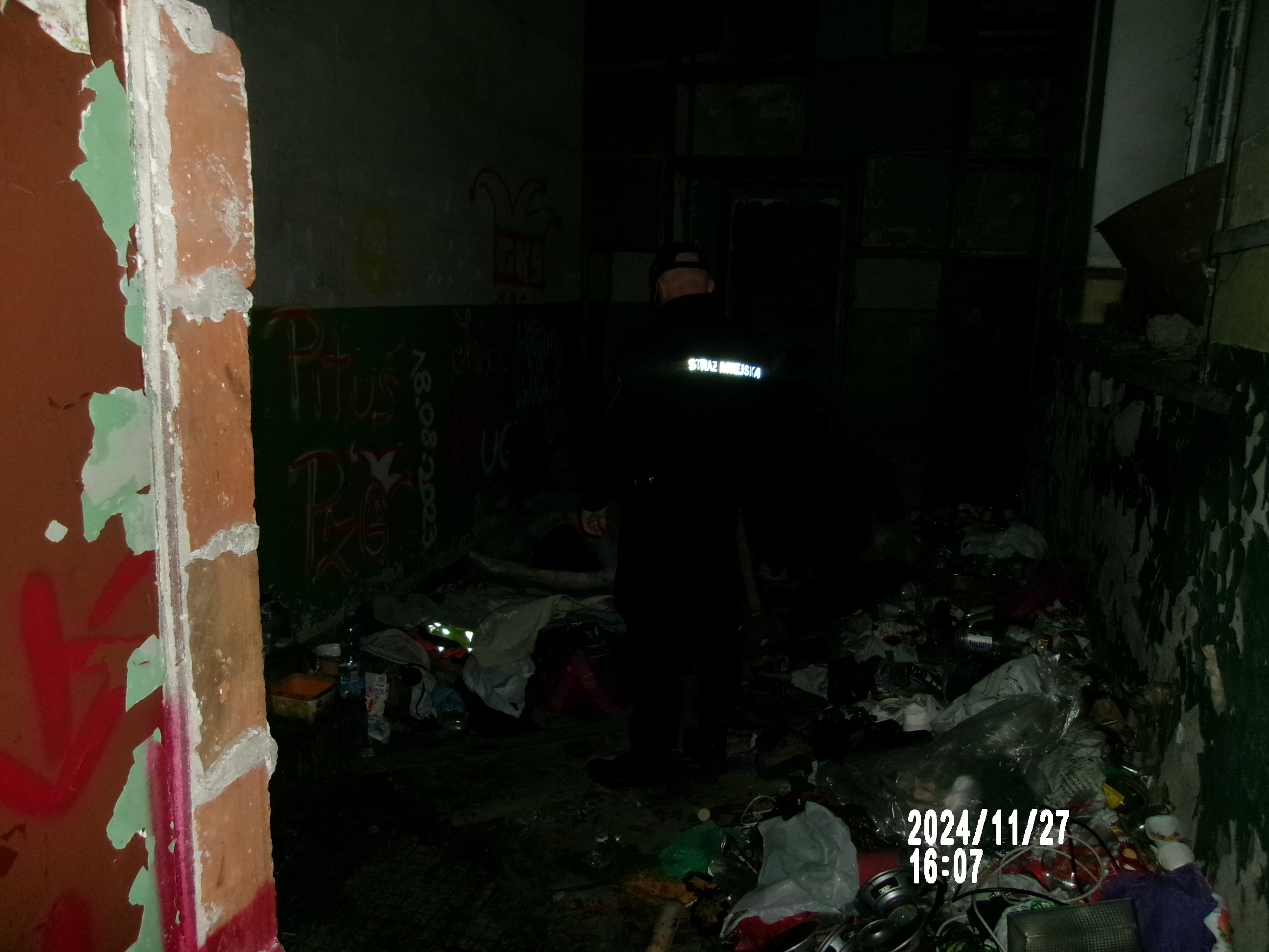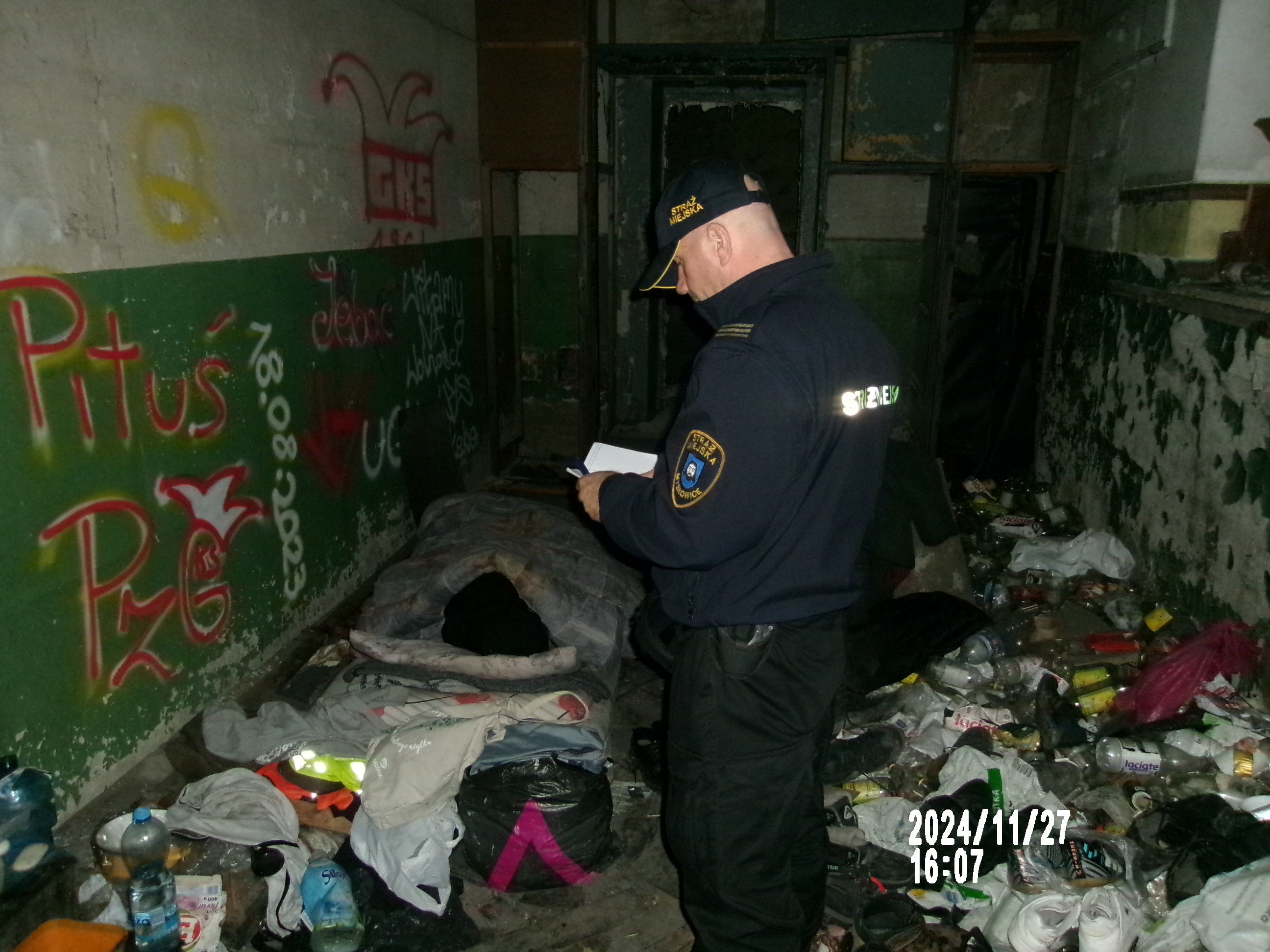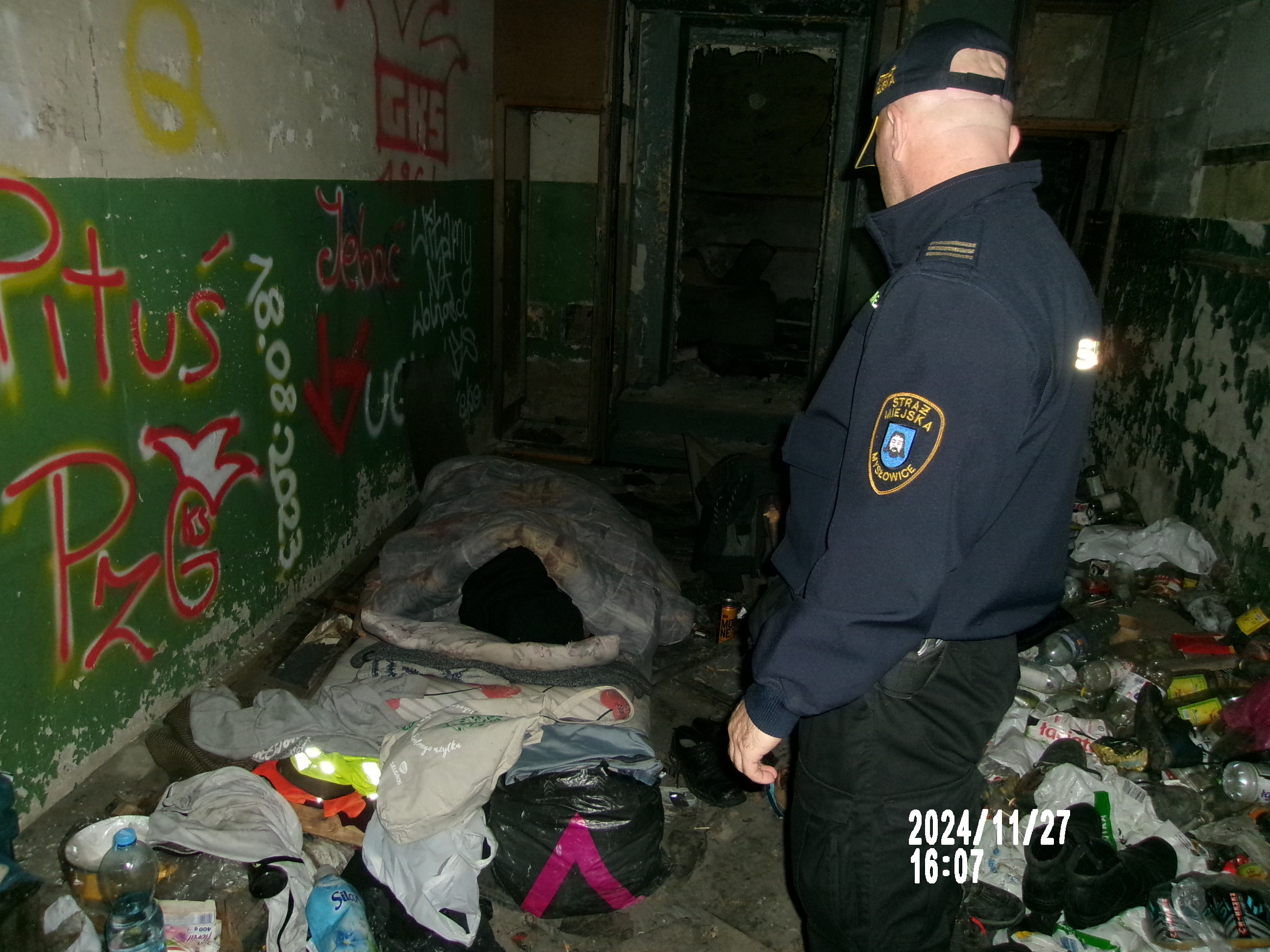 Dramat osób bezdomnych rozpoczyna się każdego roku jesienią i trwa aż do początku wiosny. Takich ludzi spotykamy w pustostanach, parkach, pojazdach komunikacji miejskiej, dworcu PKP. Często, aby ochronić się przed zimnem, osoby te szukają schronienia w klatkach schodowych, piwnicach czy kanałach ciepłowniczych. Straż Miejska dociera do takich osób i oferuje im możliwość wsparcia socjalnego.