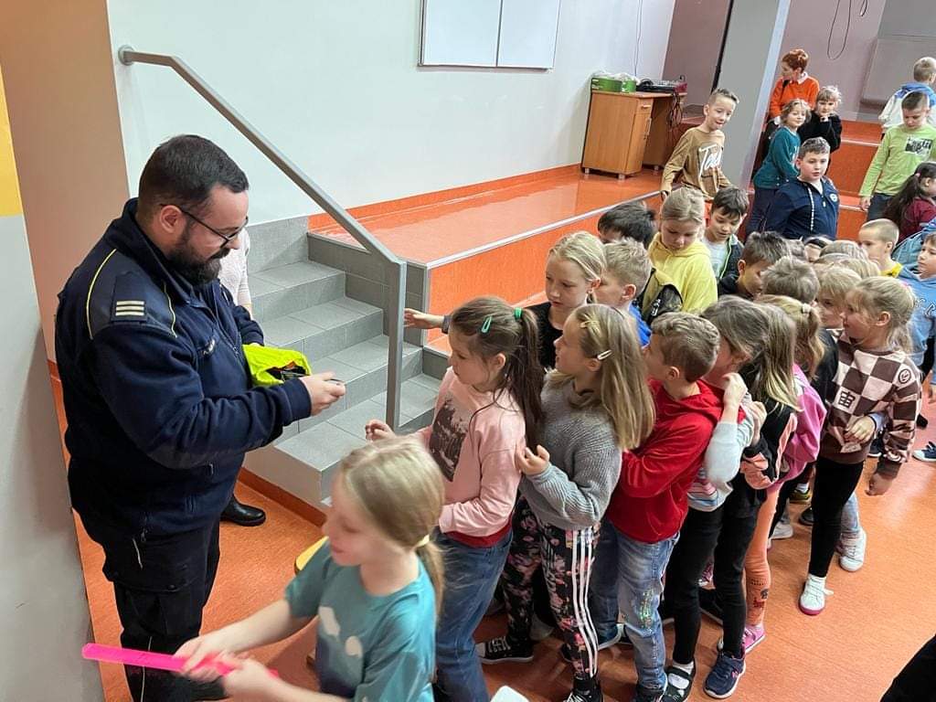 Dzieci otrzymały również uśmiechnięte odblaski.