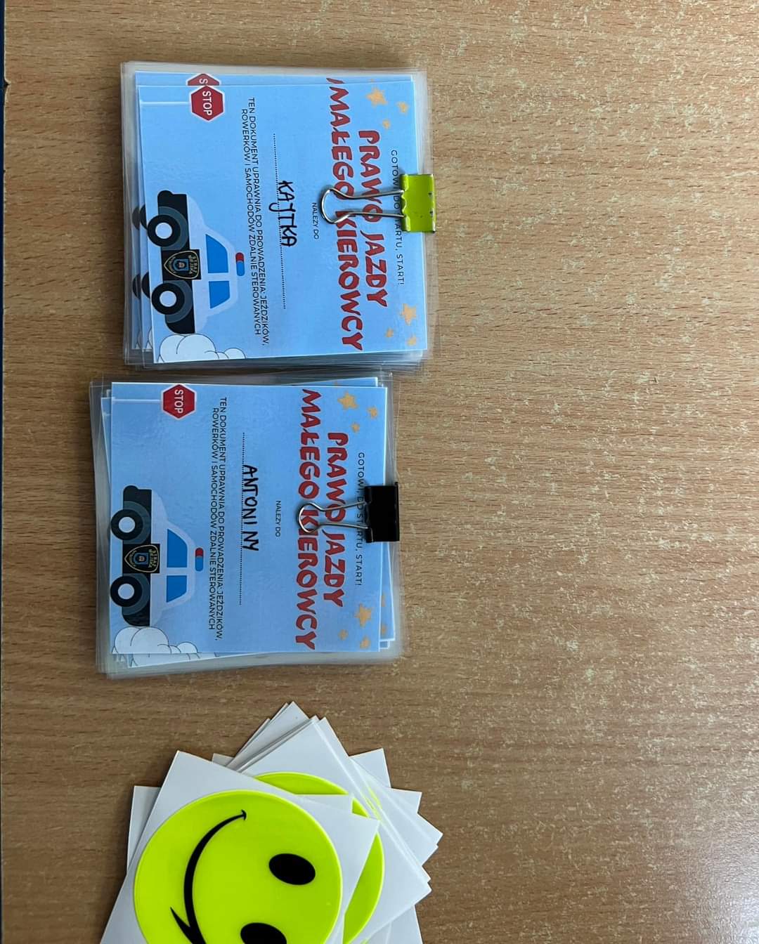 Ponadto, funkcjonariusze własnoręcznie stworzyli ”Prawo Jazdy Małego Kierowcy”, które otrzymał każdy z małych uczestników prelekcji. Uprawnia ono do prowadzenia… samochodów zdalnie sterowanych oraz jest znakomitą pamiątką, która przypomina o podstawach ruchu drogowego 🙂