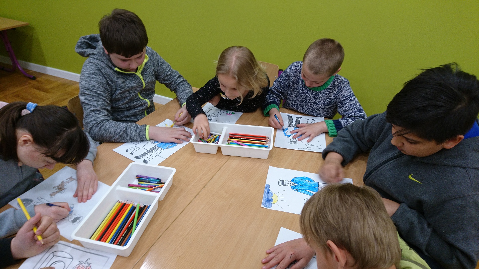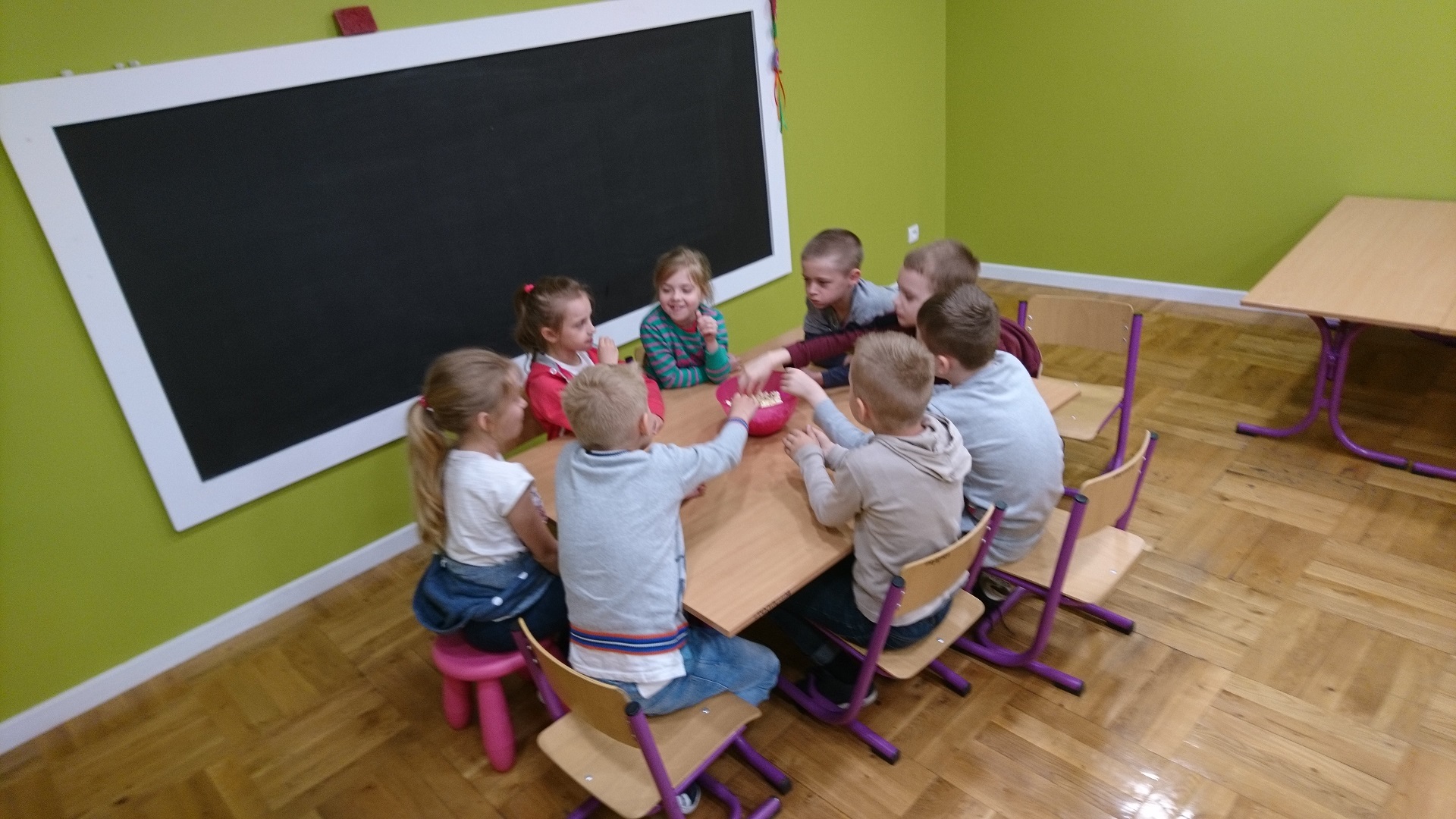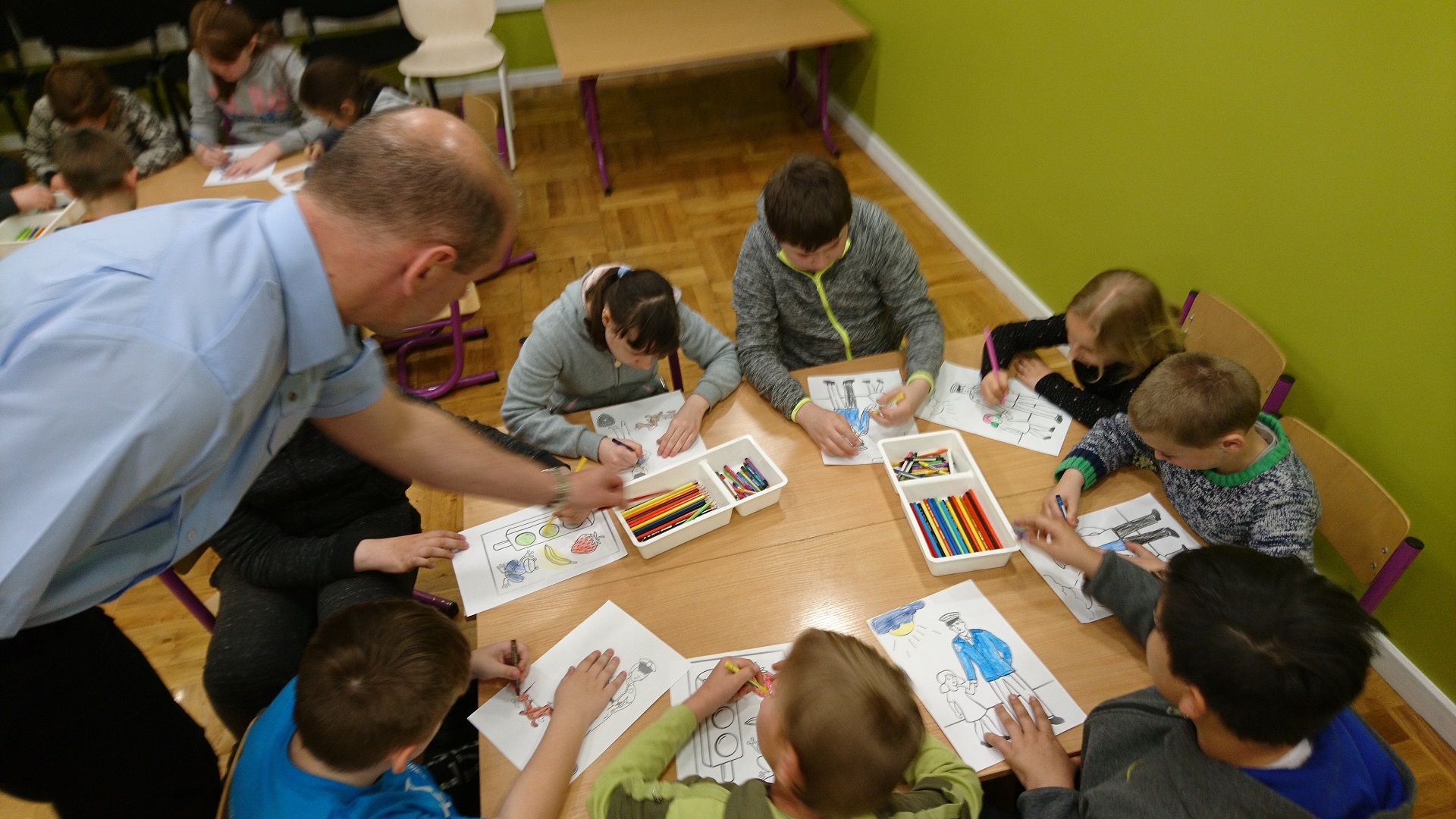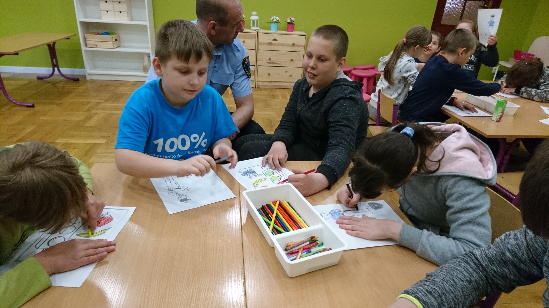 Dzieci uczestniczyły w zajęciach profilaktycznych prowadzonych w świetlicy straży miejskiej. Wszystkie klasy w ramach realizacji cyklu „Kino ze Strażą Miejską Mysłowice” brały udział w programie o nazwie „ Florka”. Głównym celem programu jest przypomnienie i utrwalenie uczniom zasad bezpiecznego zachowania wobec osoby nieznajomej. W trakcie zajęć wyświetlany jest film edukacyjny, podczas którego strażnik miejski omawia mogące się wydarzyć sytuacje oraz podaje sposoby na uniknięcie zagrożenia. Uczniowie poprzez zabawę umiloną wspólnym jedzeniem popcornu uczyli się jak być bezpiecznym.