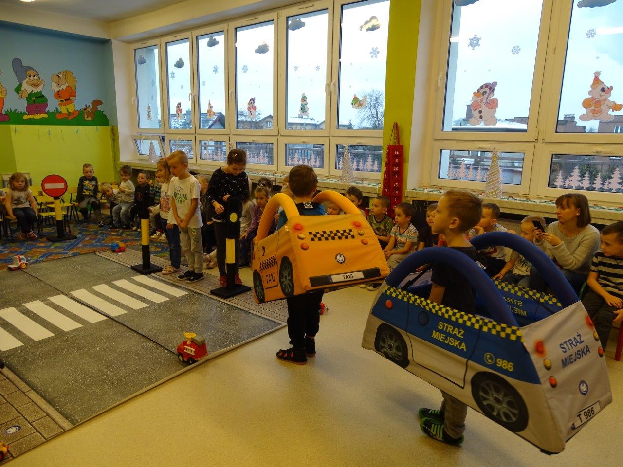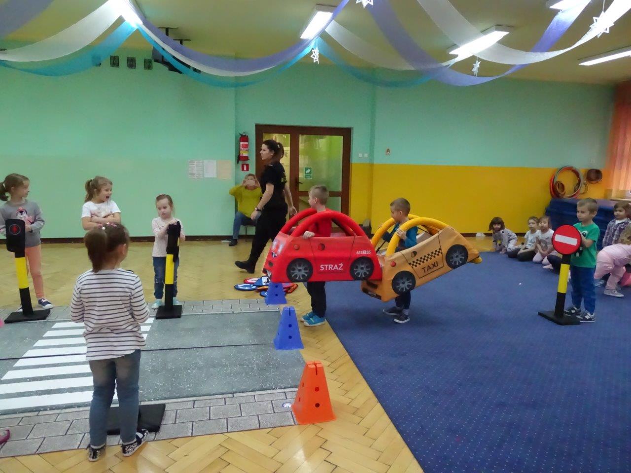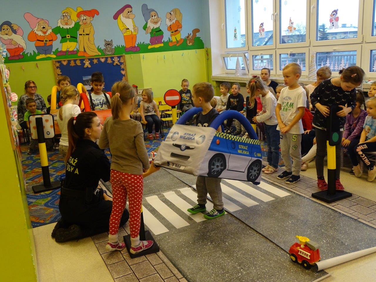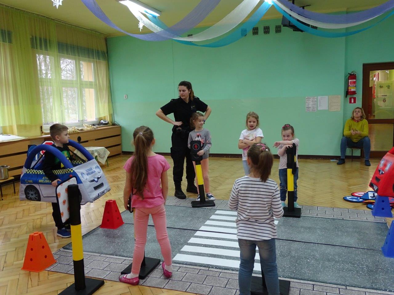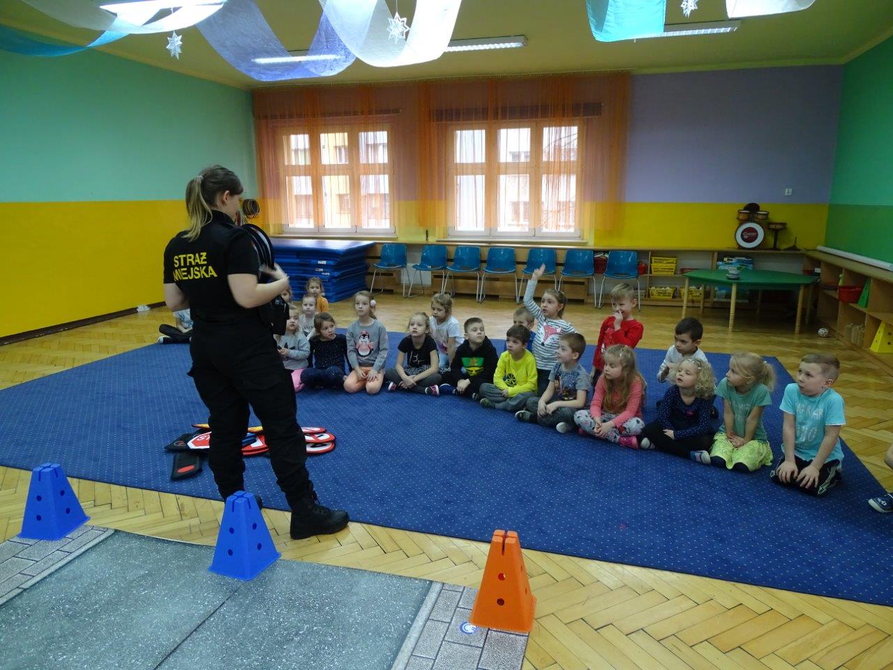 Mimo upływającego roku 2018, funkcjonariusze zespołu profilaktyki wcale nie zwalniają tępa swojej pracy i w dalszym ciągu realizują swoje zajęcia profilaktyczne na terenie mysłowickich placówek oświatowych. W minionym tygodniu objęli profilaktyką ponad 200 najmłodszych mysłowiczan. Podczas zajęć, które odbywały się na terenie Zespołu Szkolno-Przedszkolnego Nr 4 w dzielnicy Krasowy strażnicy realizowali takie programy jak : „Agresja rówieśnicza” – podczas zajęć dzieci rozmawiały z funkcjonariuszami o tym czym jest agresja, a czym przemoc, jak powinno się reagować na takie zjawiska oraz poruszali temat wzajemnej tolerancji i szacunku w środowisku klasowym i szkolnym . „Pierwsza pomoc przedmedyczna” – w trakcie lekcji uczniowie przypominali sobie numery alarmowe oraz jakie informacje należy podać dyspozytorowi gdy wzywamy pomoc, ćwiczyli pozycje „boczną bezpieczną” i „koszyczek” oraz próbowali swoich sił podczas wykonywania RKO na ćwiczebnym fantomie, którego funkcjonariusze zabierają zawsze ze sobą na zajęcia. Natomiast z programem „Autochodzik” odwiedziliśmy Przedszkole Nr 18, 6, 1 oraz 8 . Najmłodsi mysłowiczanie podczas zajęć utrwalali sobie zasady bezpiecznego korzystania z przejść dla pieszych oraz drogi, przypominali sobie za pomocą znaków drogowych kształty i kolory, rozmawiali o różnych niebezpiecznych przypadkach, które mogą ich spotkać na drodze. Przedszkolaki na koniec zajęć mogły wcielić się w kierowców i pieszych bawiąc się wraz z funkcjonariuszami w bezpiecznym miasteczku, gdzie musieli pamiętać o wcześniej poruszanych kwestiach bezpieczeństwa. Wszystkie dzieci bezpiecznie i wzorowo brały udział w zabawie.