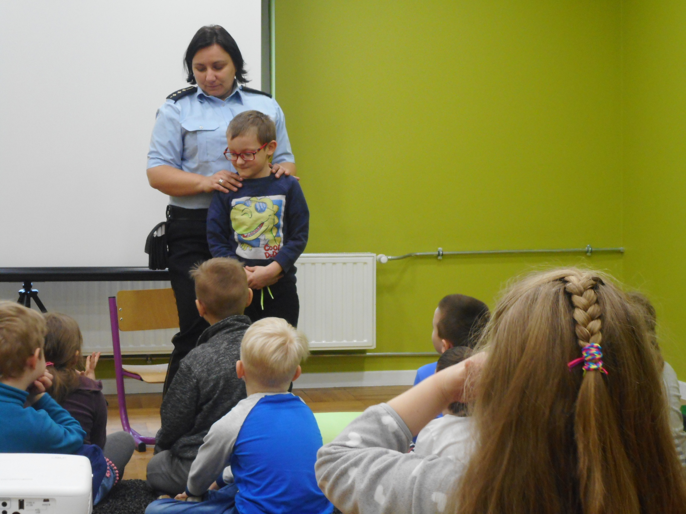 W zajęciach o nazwie „Kino ze Strażą Miejską Mysłowice – Przyjaciel Rex” wzięły udział dzieci z Przedszkola Integracyjnego. Zakres prelekcji obejmował informacje na temat bezpiecznego zachowania wobec zwierząt, omówienie jakie obowiązki ciążą na właścicielu psa oraz przedstawienie zawodów, w których pracują psy. Dzieci nauczyły się również pozycji „żółwia” a następnie obejrzały film edukacyjny i zostały poczęstowane popcornem, jak w prawdziwym kinie. Po zajęciach przedszkolaki otrzymały „psie zestawy” aby mogły w przyszłości edukować dorosłych oraz zostały zaopatrzone w elementy odblaskowe dla zwiększenia ich bezpieczeństwa na drodze. Dzieci w podziękowaniu przekazały nam ręcznie wykonaną ozdobę do naszej nowej świetlicy.
