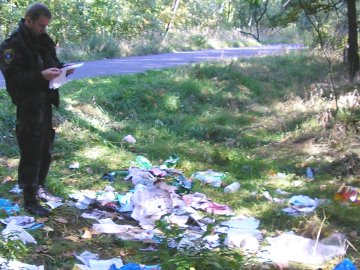 6. Nadzór nad realizacją obowiązków określonych w ust. 1-4 sprawuje wójt, burmistrz lub prezydent miasta. Fot. Strażnicy prowadzą czynności służbowe pozwalające ustalić sprawcę wykroczenia polegającego na wyrzuceniu odpadów na tereny leśne