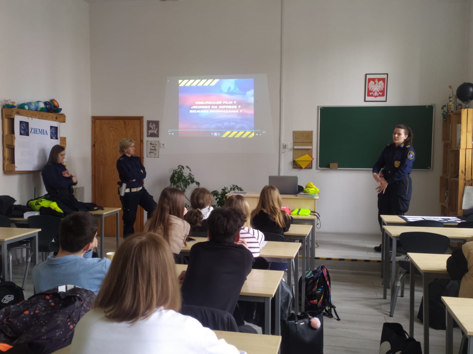 Głównym celem spotkań było zapoznanie młodzieży z problemem jakim jest uzależnienie oraz zwiększenie świadomości młodych ludzi w zakresie skutków jakie niesie za sobą jazda samochodem po spożyciu alkoholu lub innych środków odurzających. Rozmawialiśmy również o aktualnych przepisach w Prawie o Ruchu Drogowym. Podczas zajęć zostały wykorzystane alkogogle oraz narkogogle, przez co w kontrolowany sposób uczestnicy zajęć mogą uświadomić sobie jak alkohol i narkotyki wpływają na ich reakcje.