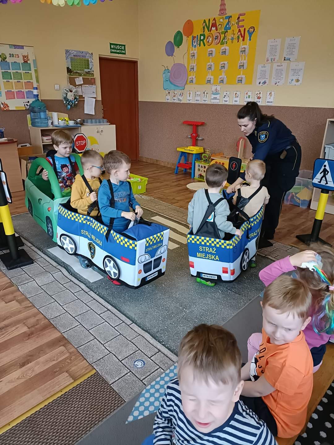 W minionych tygodniach funkcjonariusze Mysłowickiej Straży Miejskiej przeprowadzili zajęcia profilaktyczne z udziałem Zestawu Miasteczko Umiejętności Drogowych ”AUTOCHODZIK”.Program miał na celu edukację przedszkolaków w zakresie bezpiecznego zachowania się na drodze. Omawiane były z dziećmi poszczególne znaki drogowe oraz reguły obowiązujące przy korzystaniu z przejść dla pieszych z sygnalizacją świetlną i bez niej. Podczas zajęć dzieci korzystały z miasteczka drogowego i w kontrolowanych warunkach utrwalały wiedzę, którą zdobyły.