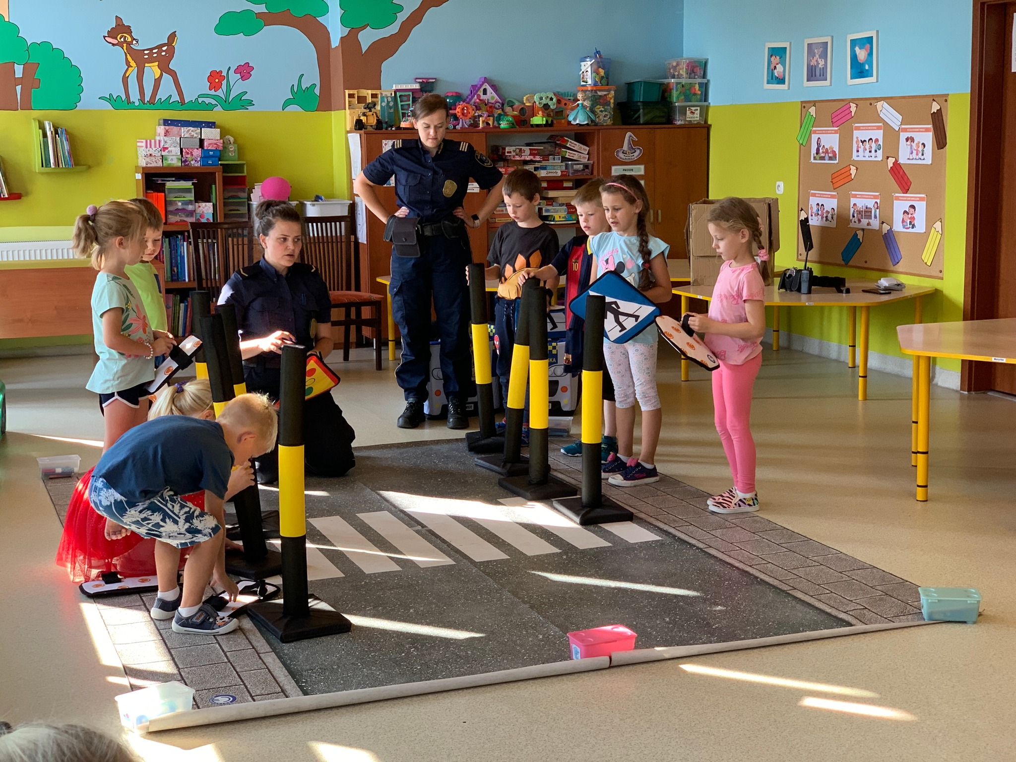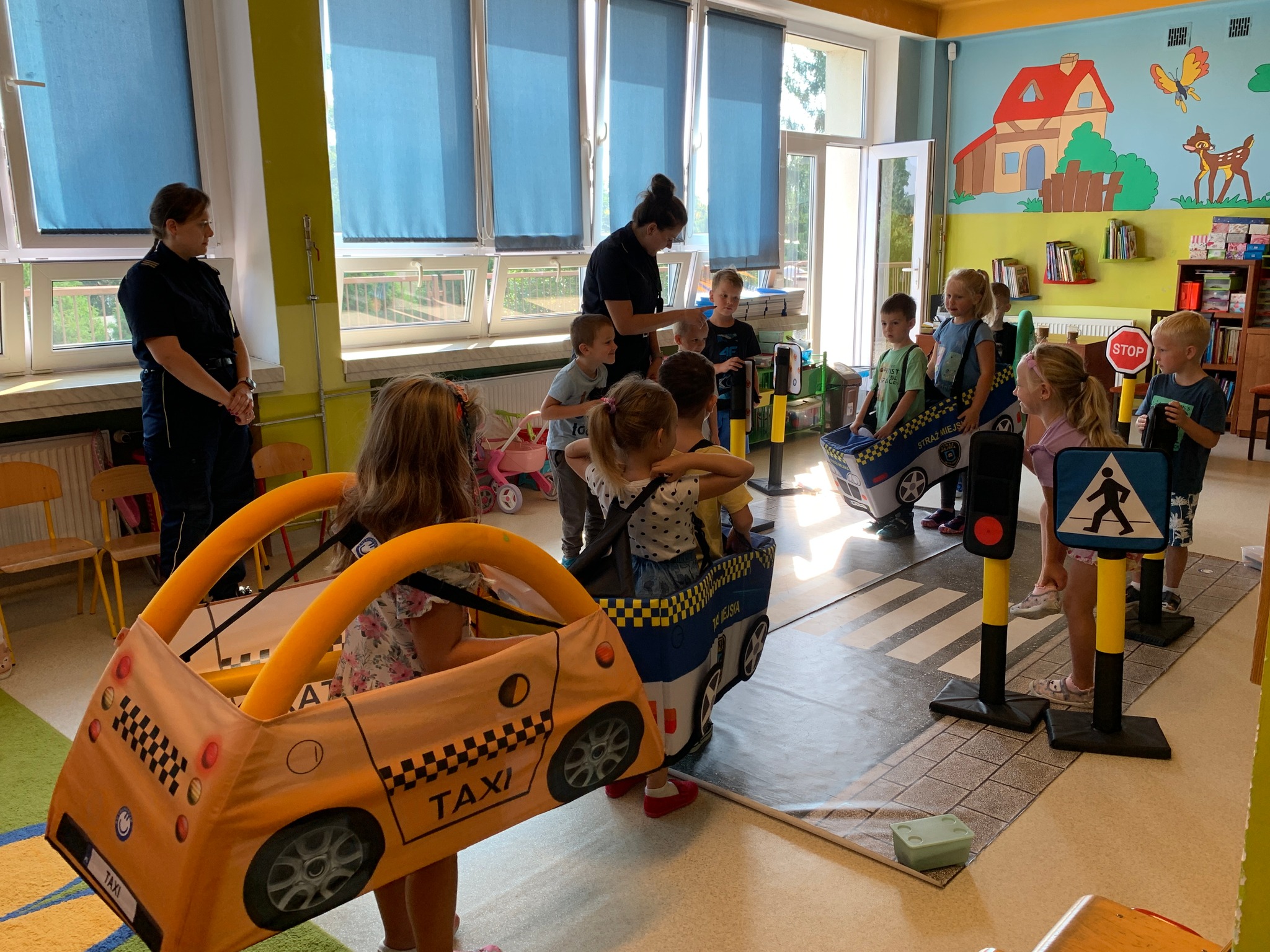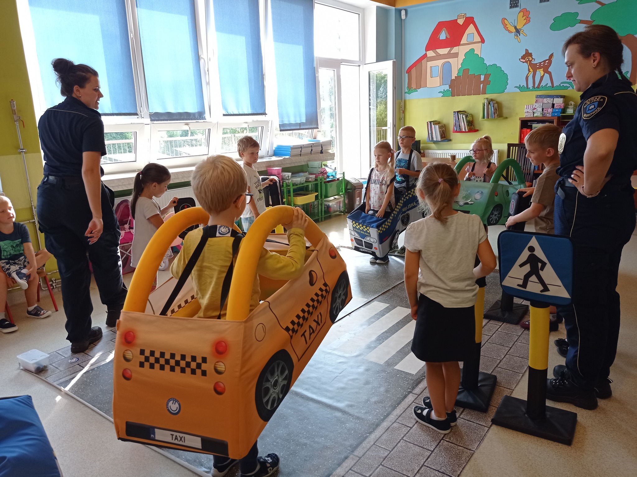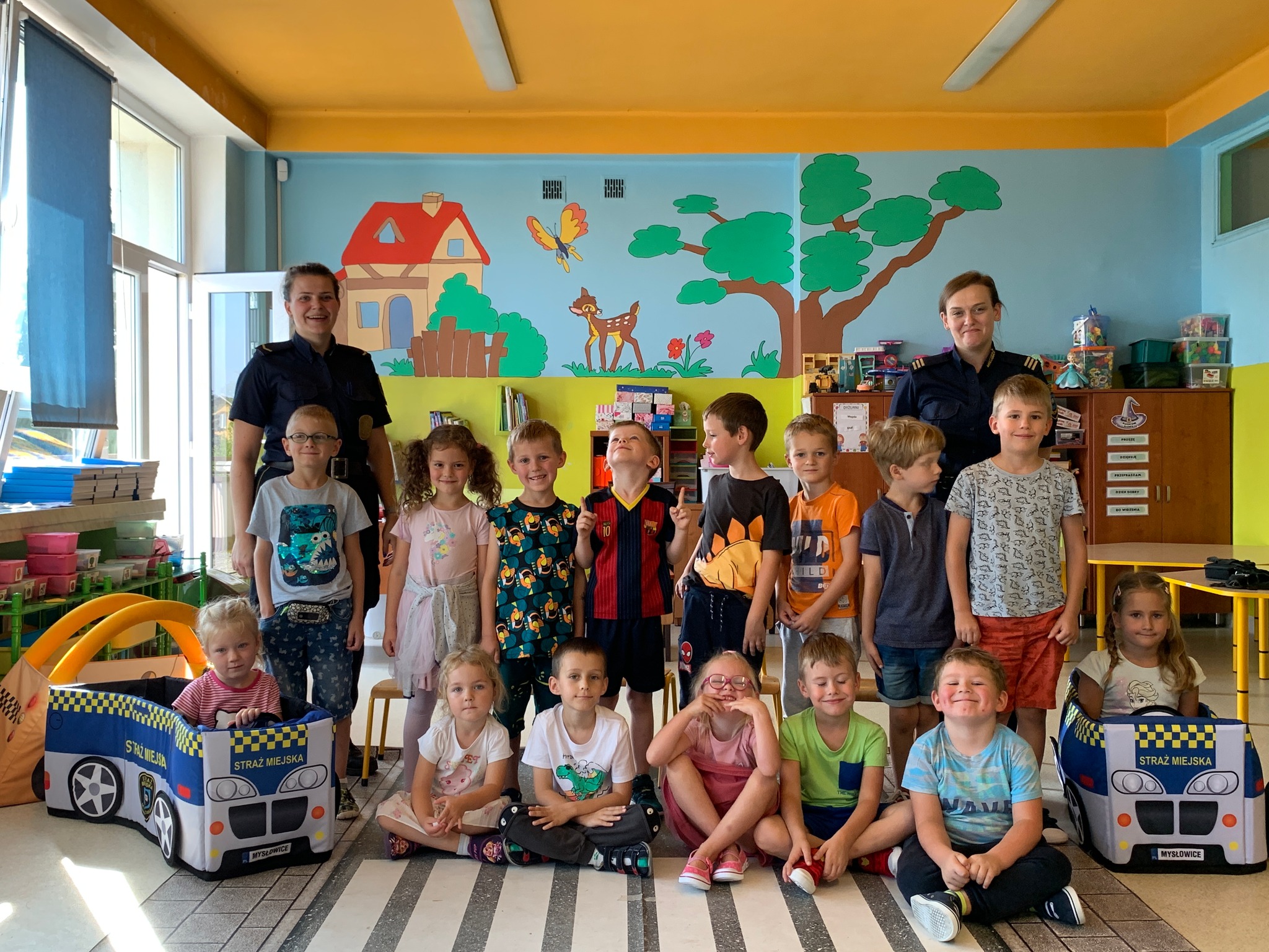 W minionych tygodniach funkcjonariuszki Mysłowickiej Straży Miejskiej przeprowadziły zajęcia profilaktyczne z udziałem Zestawu Miasteczko Umiejętności Drogowych ”AUTOCHODZIK”.Program miał na celu edukację przedszkolaków w zakresie bezpiecznego zachowania się na drodze. Omawiane były z dziećmi poszczególne znaki drogowe oraz reguły obowiązujące przy korzystaniu z przejść dla pieszych z sygnalizacją świetlną i bez niej. Podczas zajęć dzieci korzystały z miasteczka drogowego i w kontrolowanych warunkach utrwalały wiedzę, którą zdobyły.