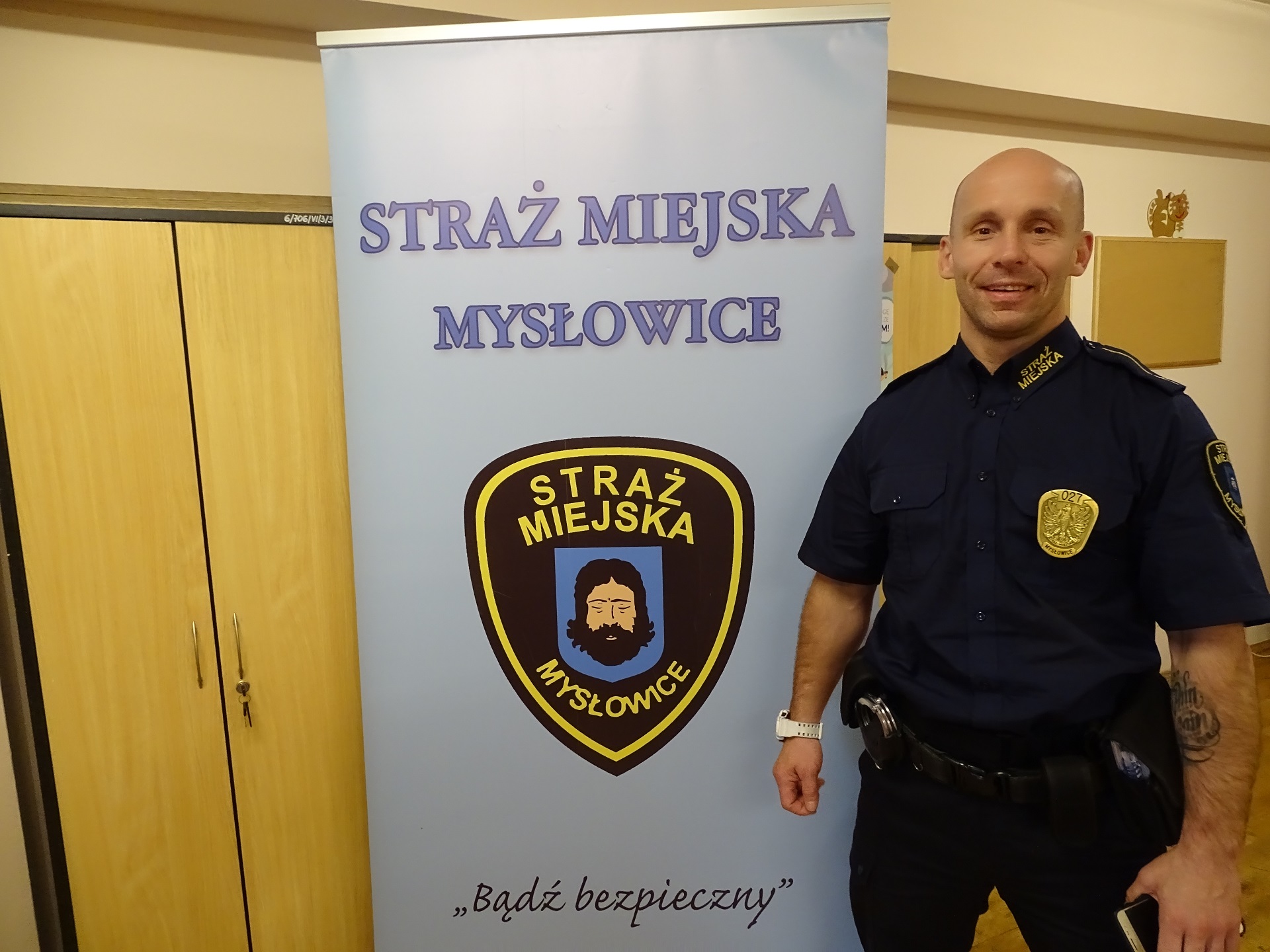 W kwietniu rozpoczęliśmy cykl artykułów o strażnikach naszej jednostki, wtedy przedstawiałem strażnika Marka Żemłę, honorowego dawcę krwi, dzisiaj chciałbym przybliżyć państwu osobę funkcjonariusza Sebastiana Stachonia. Sebastian pracuje w naszej jednostce od 2006r., w Referacie Patrolowo – Interwencyjnym, obecnie w stopniu młodszego inspektora. Posiada uprawnienia instruktora samoobrony i kickboxingu z międzynarodowymi uprawnieniami. Prowadzi dla nas wewnętrzne szkolenia, podczas których strażnicy nabywają bardzo przydatne w naszej służbie umiejętności, co sprawia, że czują się pewniej wykonując nałożone na nich obowiązki. Na koncie jego sportowych osiągnięć jest między innymi tytuł Międzynarodowego Mistrza Szwajcarii, Holandii, W. Brytanii, jest medalistą europejskich turniejów oraz wielokrotnym zwycięzcą w Mistrzostwach Polski. Dodaję, że prywatnie Sebastian ma uroczą córeczkę Lenę, jest zapalonym wędkarzem, „morsem” i pasjonatem samochodów terenowych.