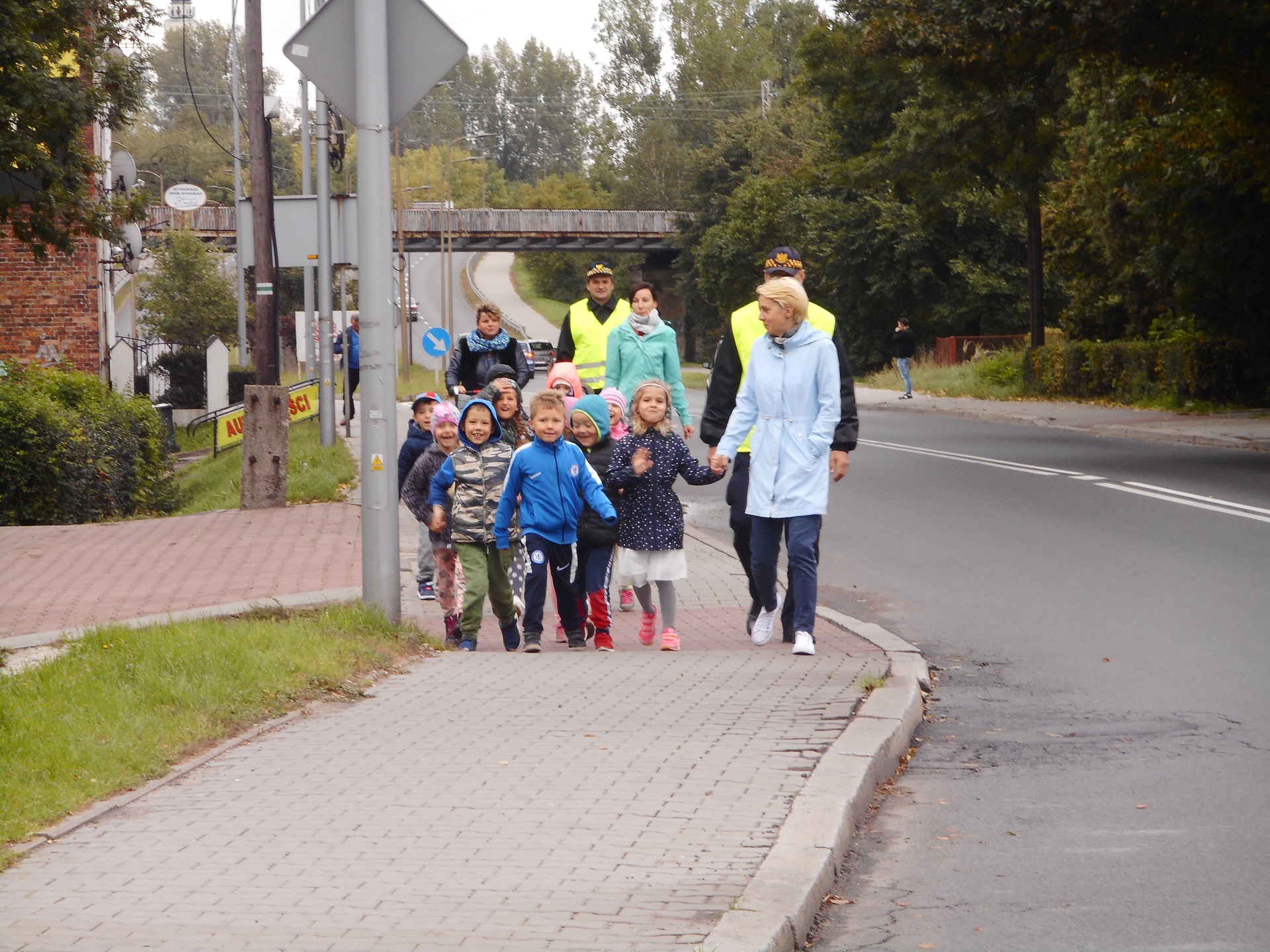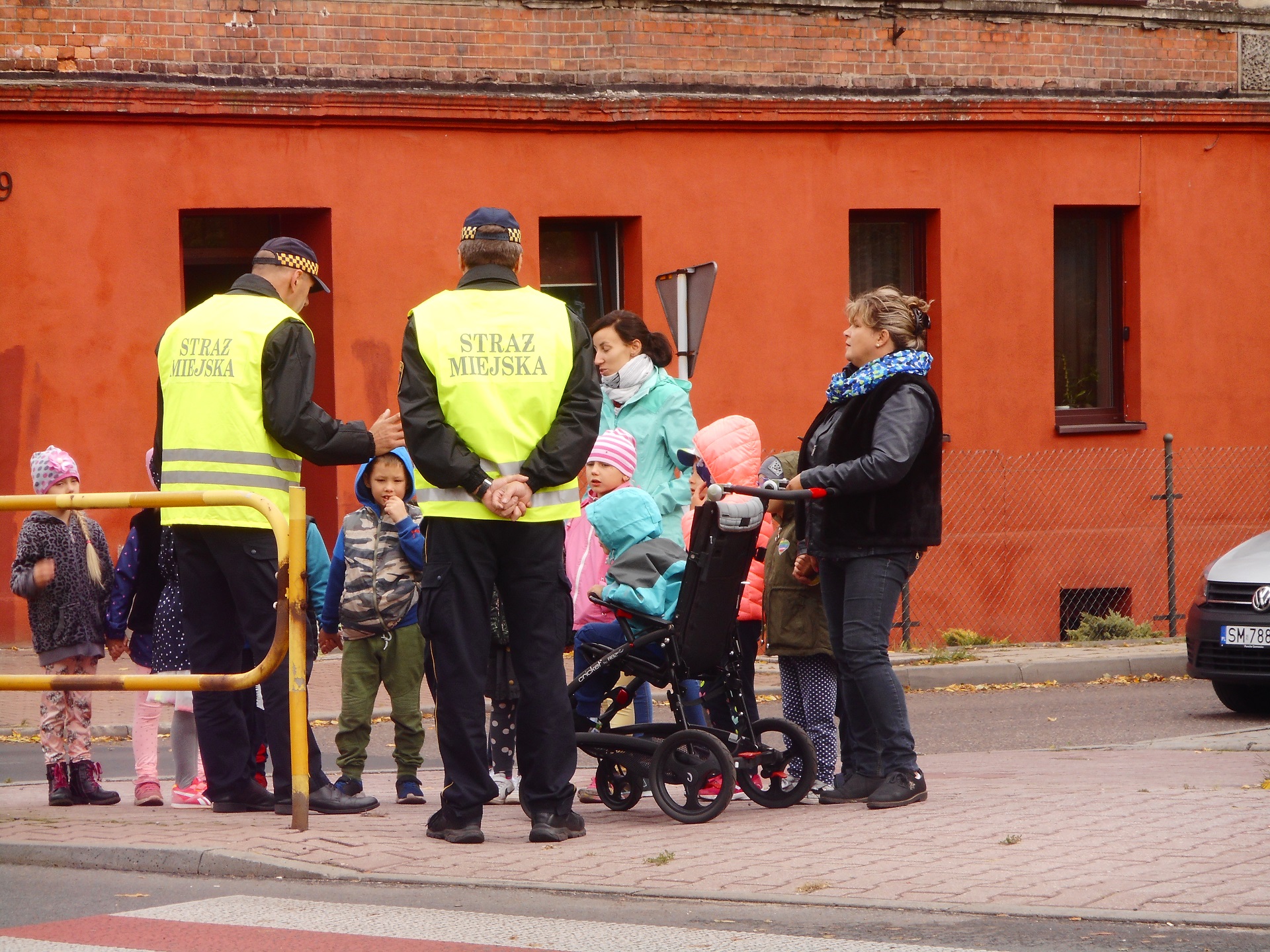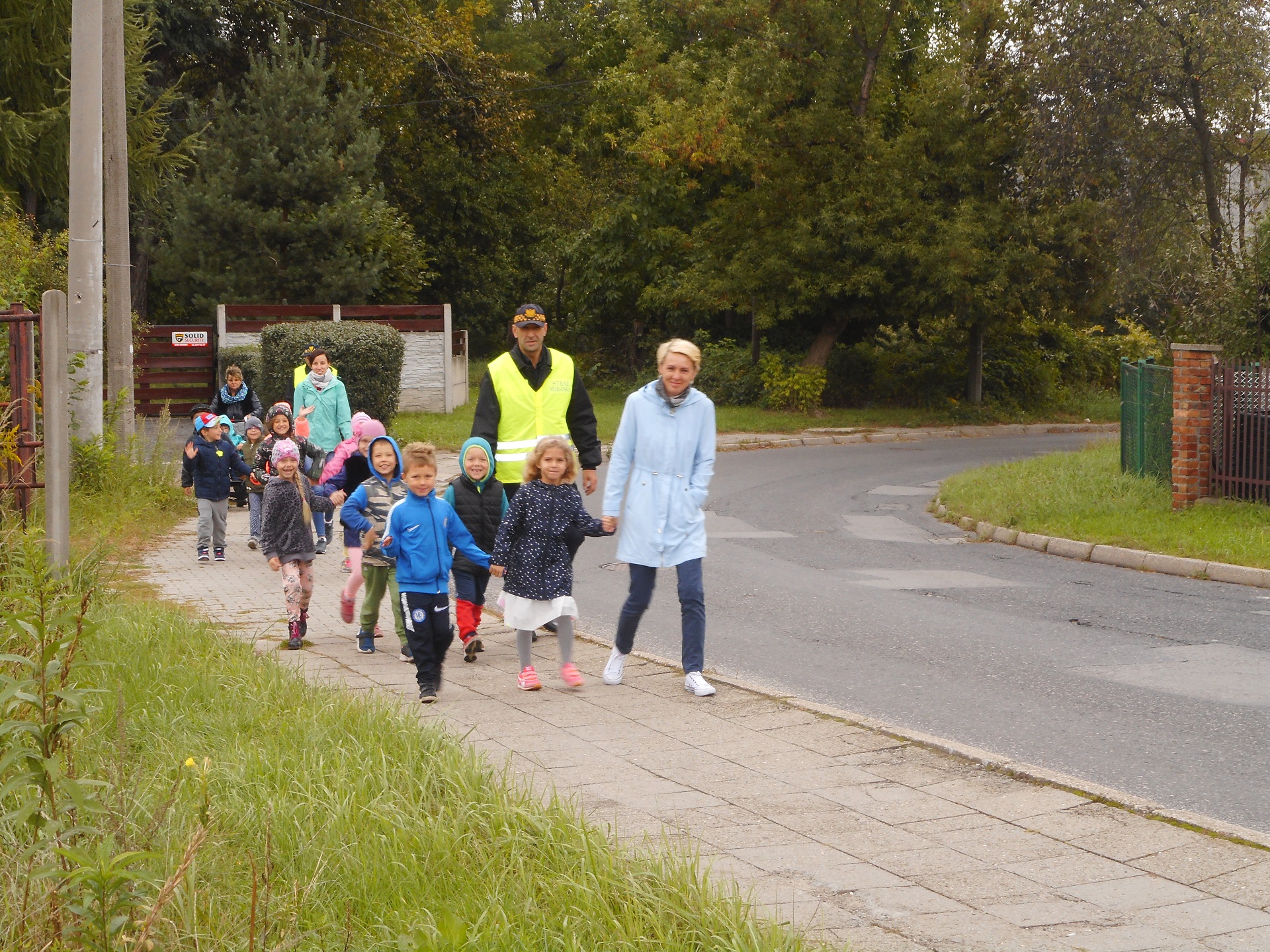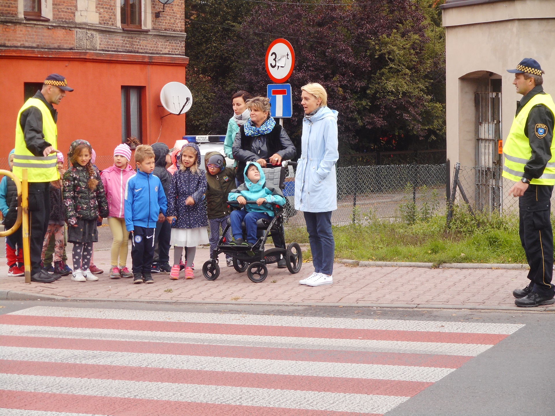 Dzisiaj nasi funkcjonariusze uczyli dzieci z Przedszkola nr 7 na ulicy Portowej bezpiecznego poruszania się po drodze. Podczas wspólnego spaceru przypomnieli przedszkolakom zasady przechodzenia przez przejście dla pieszych z sygnalizacją świetlną. Dzieci utrwaliły sobie, że na czerwonym świetle stoimy i czekamy na przejście przez jezdnię, a przechodzimy na świetle zielonym oraz że dodatkowo podczas przechodzenia podnosimy rękę do góry, aby być lepiej widocznymi.