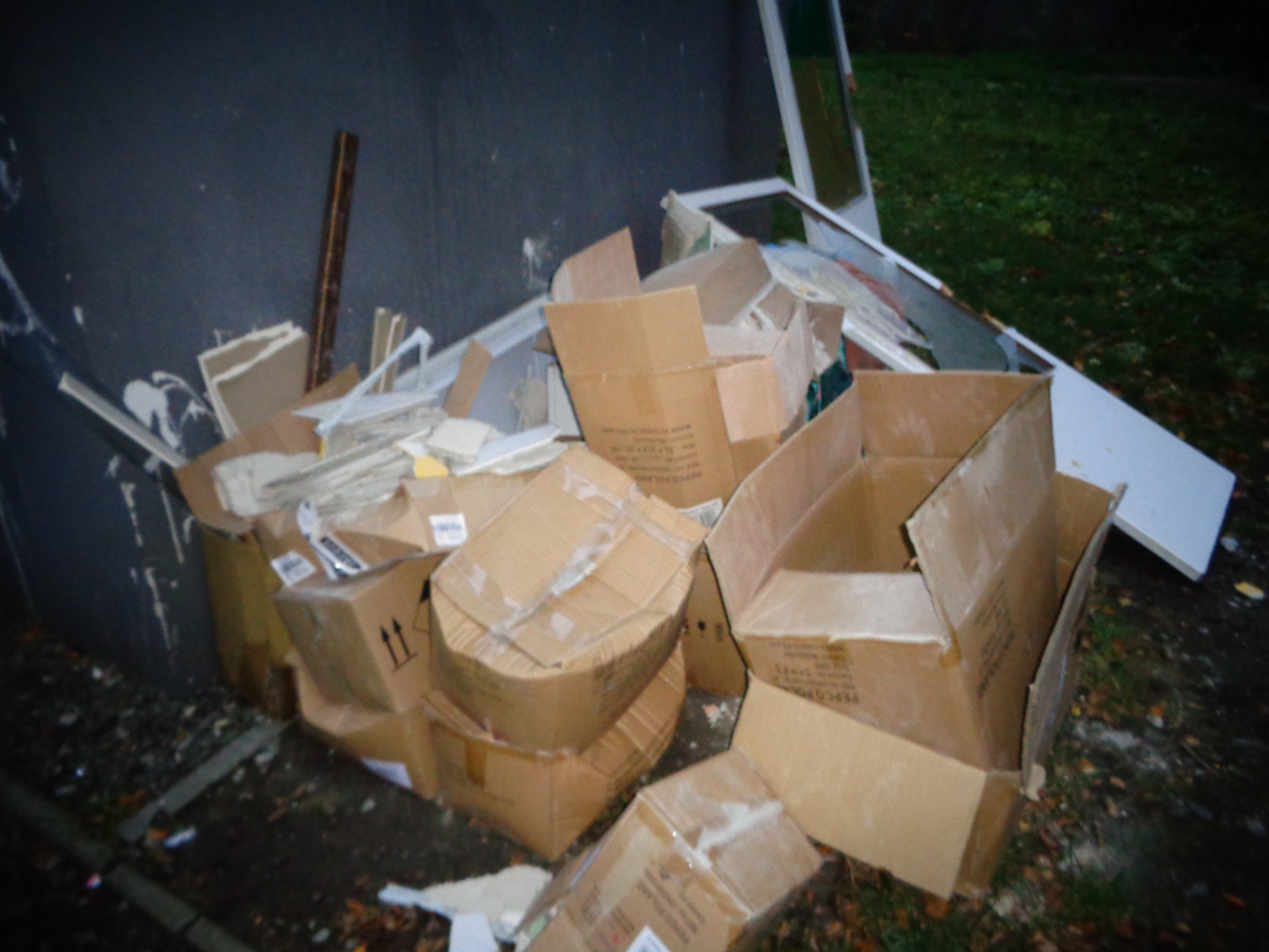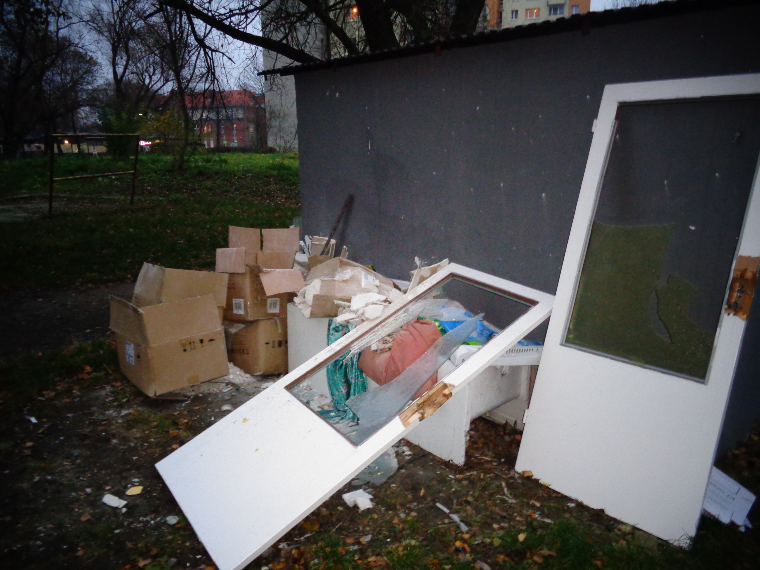 W dniu 15.11. 2018 roku do Straży Miejskiej wpłynęło zgłoszenie mieszkańca bloku przy ul. Mickiewicza dotyczące n/n lokatora, który odpady poremontowe składuje obok wiaty śmietnikowej przy ul. Górniczej.