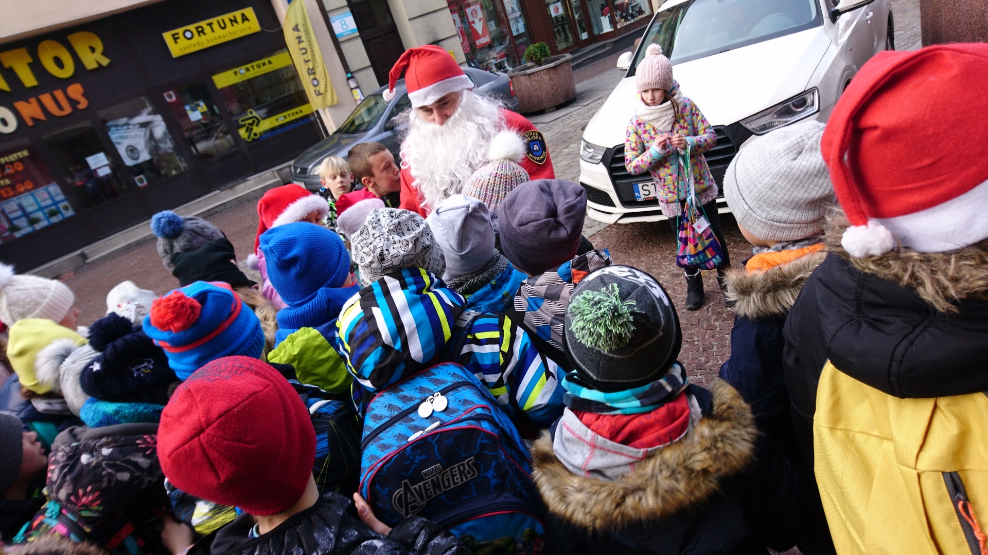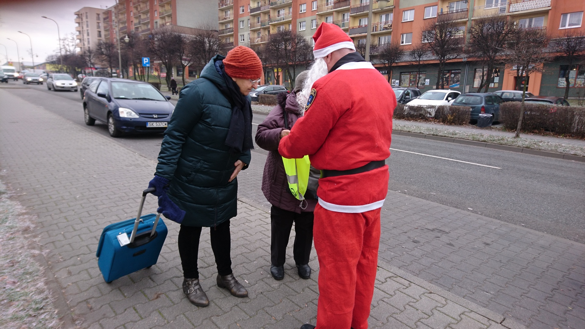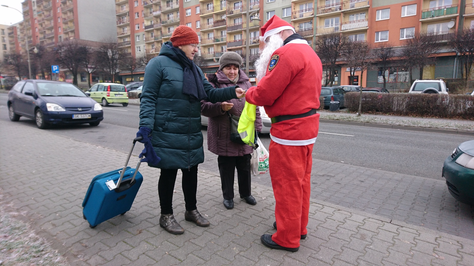 W dniu 6.12.2018r w godzinach od 8.00 do 13.00 w rejonie naszego miasta strażnicy asystowali Świętemu Mikołajowi podczas rozdawania słodkich niespodzianek oraz drobnych upominków w postaci odblasków i woreczków odblaskowych. W tym dniu funkcjonariusze również stosowali pouczenia, a nie mandaty w sytuacjach, które tego wymagały.