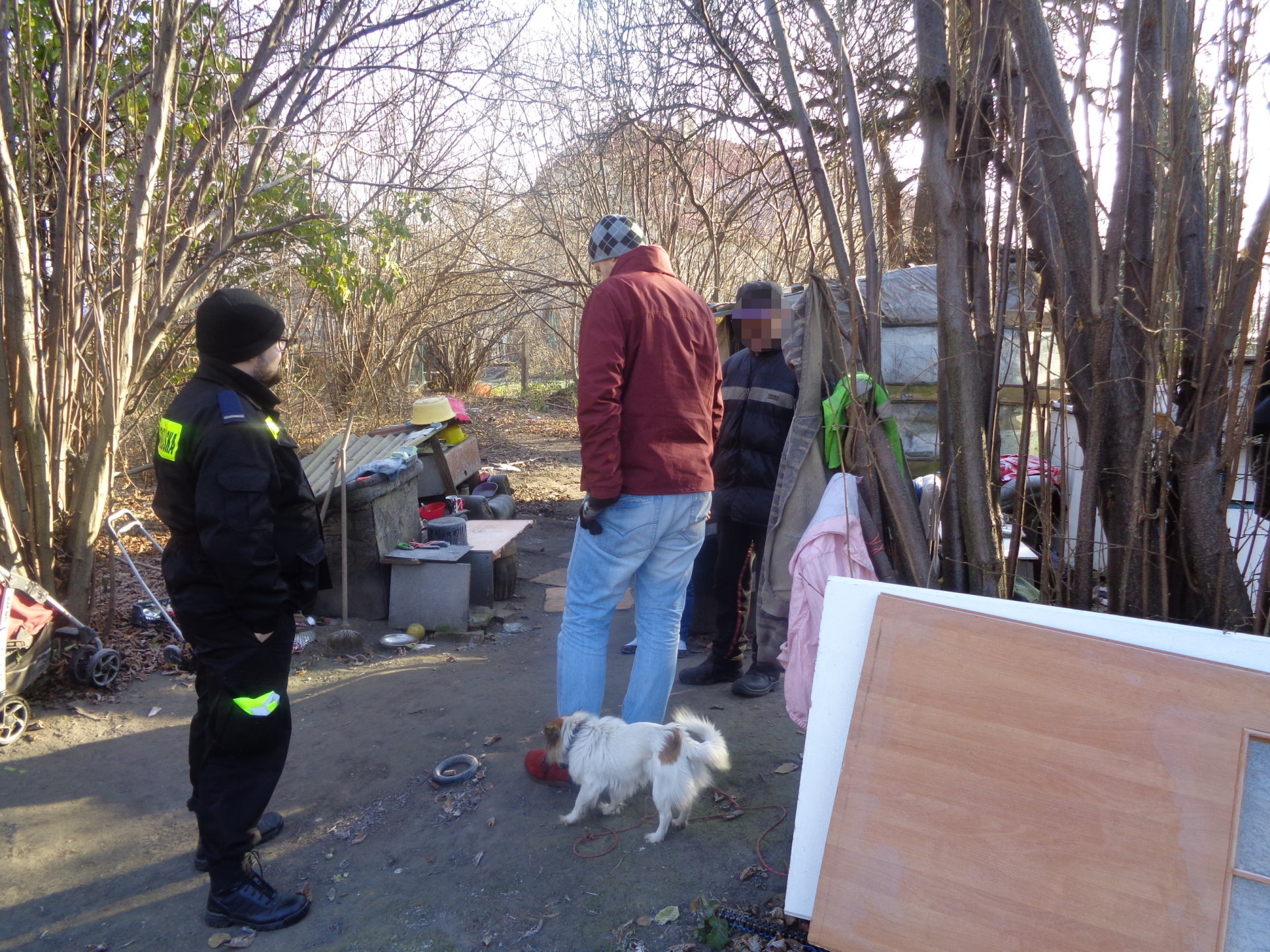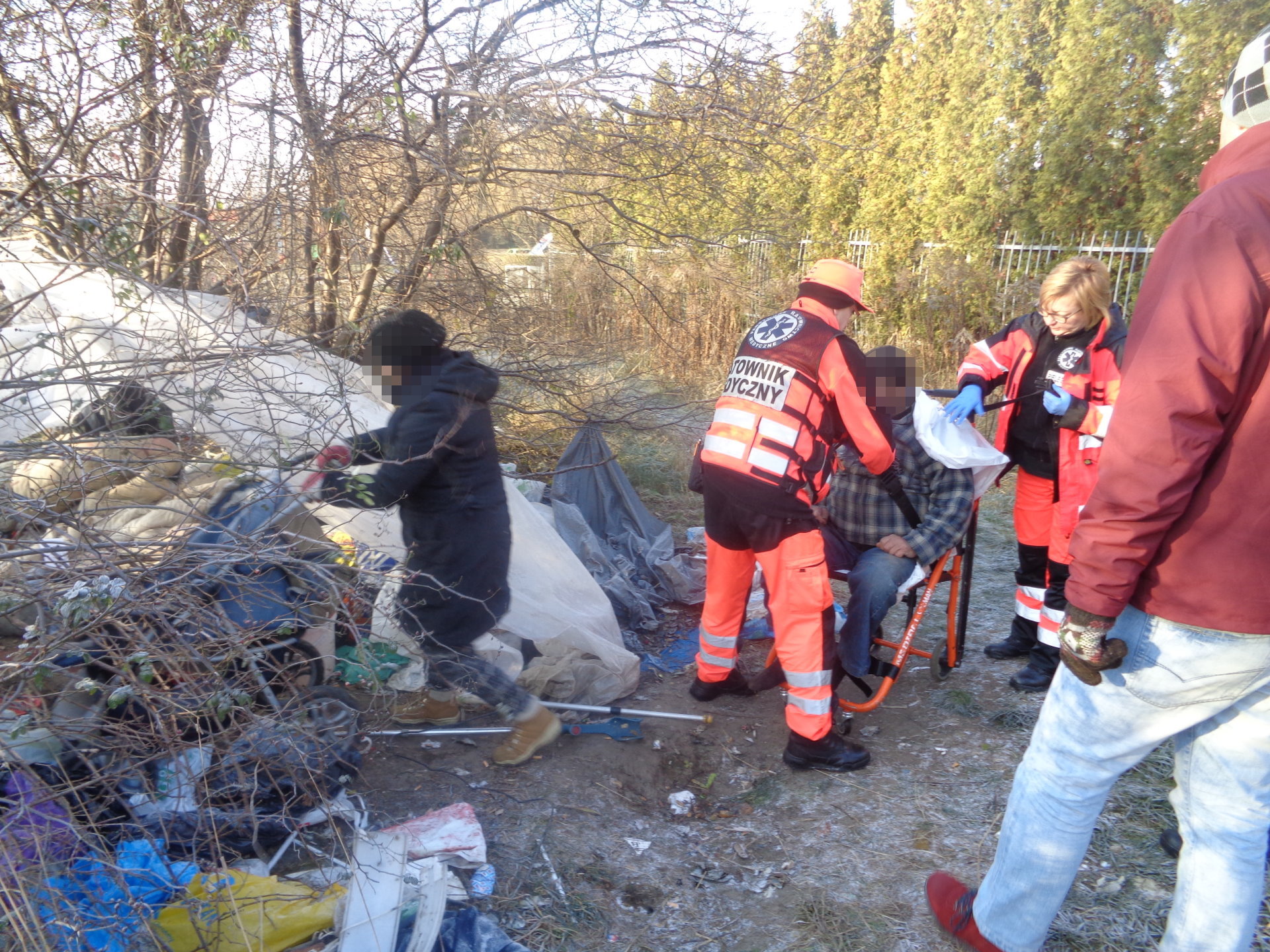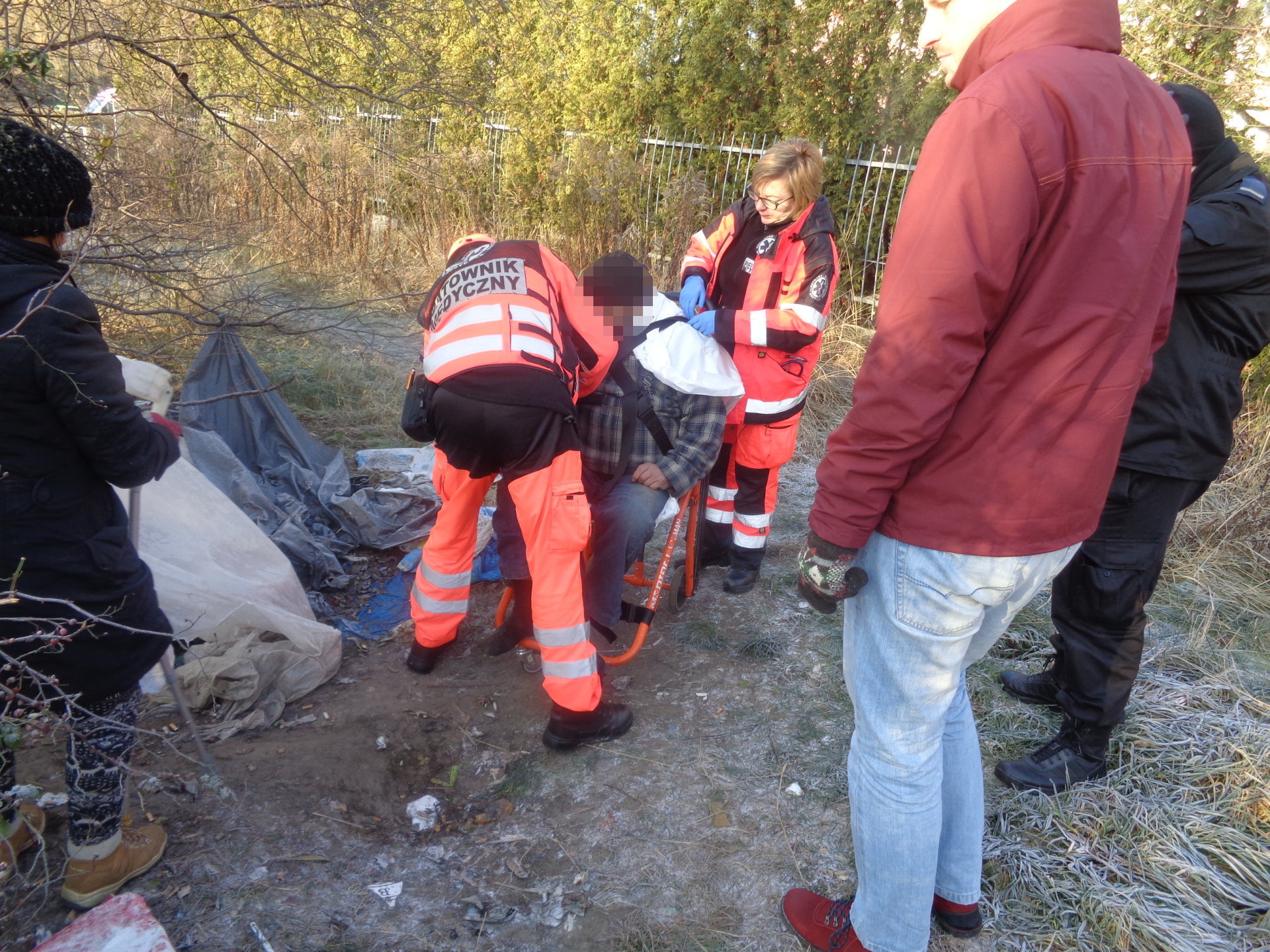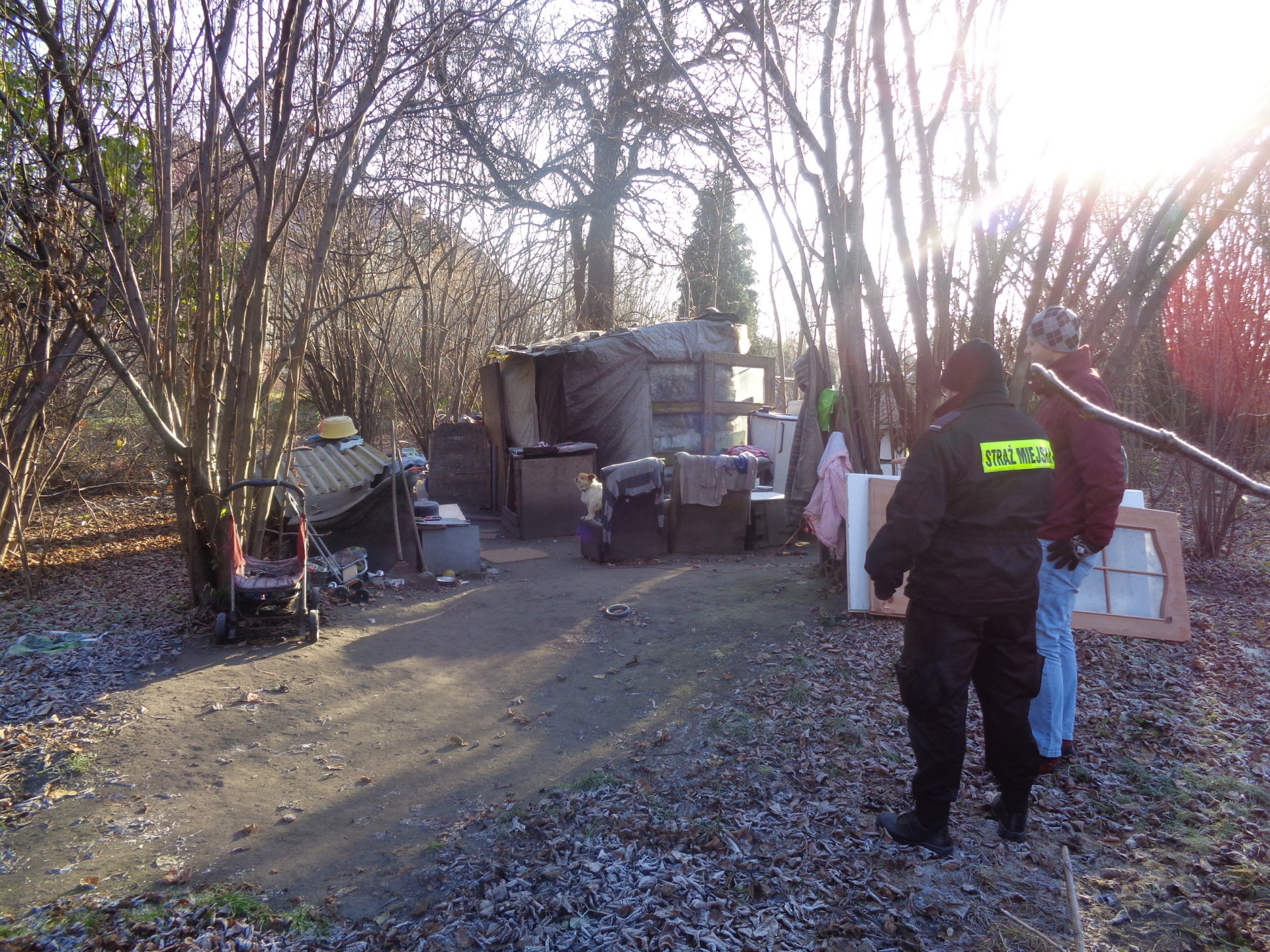 Straż Miejska takie miejsca monitoruje. W dniu dzisiejszym patrol Straży Miejskiej podczas kontroli ul. Jodłowej stwierdził obecność kobiety i mężczyzny w prowizorycznym szałasie pokrytym folią. W ocenie strażników mężczyzna znajdował się w stanie skrajnego wyczerpania i wychłodzenia. Wezwana na miejsce karetka pogotowia odwiozła bezdomnego do szpitala. Natomiast kobieta została przekazana pod opiekę pracownika socjalnego MOPS.