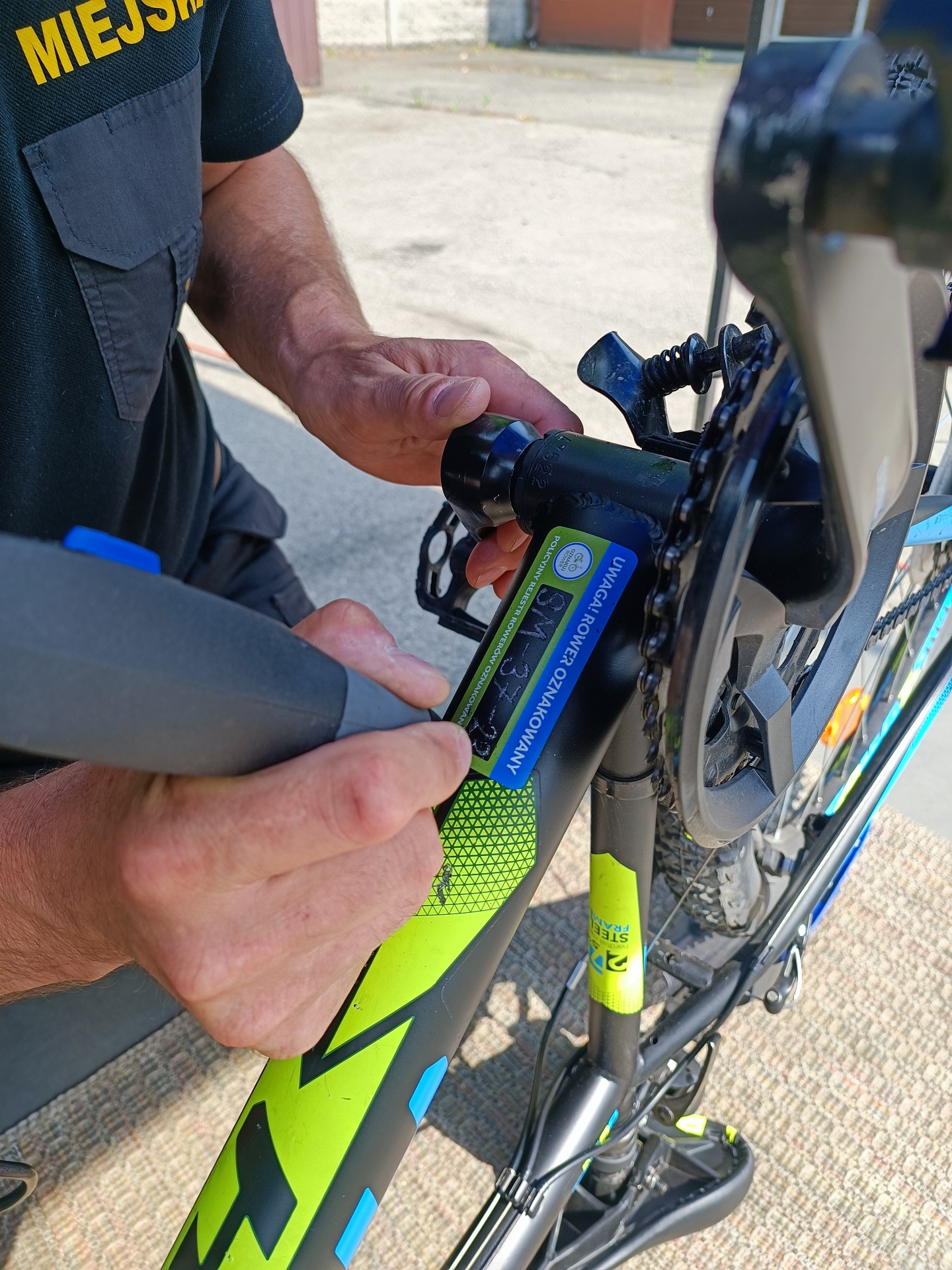 Znakowanie roweru polega na naniesieniu na ramę oznaczenia, składającego się zarówno z liter, jak i cyfr. Powstaje w ten sposób dodatkowy numer ramy roweru. Napis zostaje wygrawerowany przez specjalne urządzenie, zwane ”engrawerem”. Mikroudarowa technologia, w której pracuje engrawer, jest tak dobra, iż można wykryć jej ingerencję nawet po próbie starcia oznaczenia.