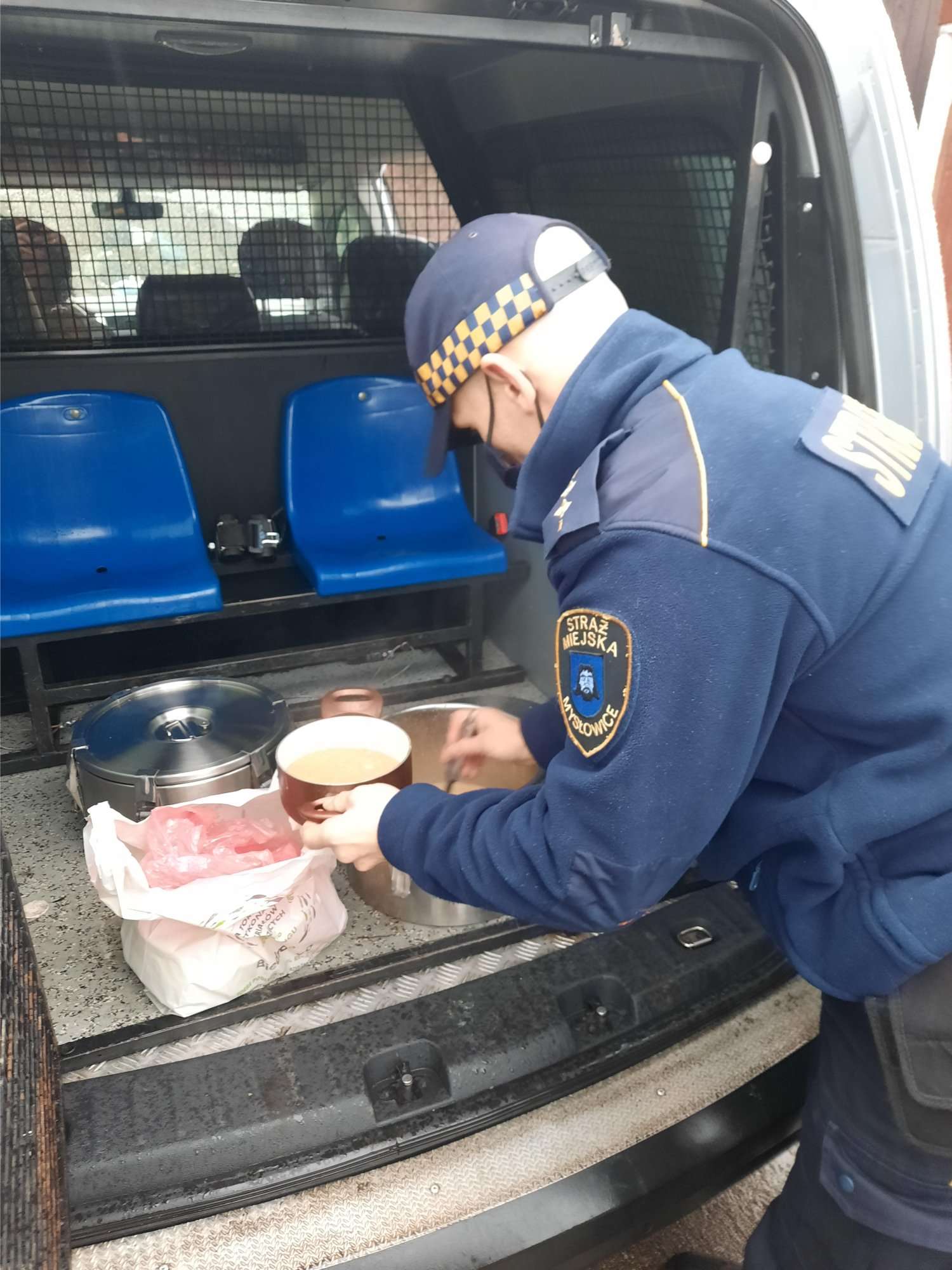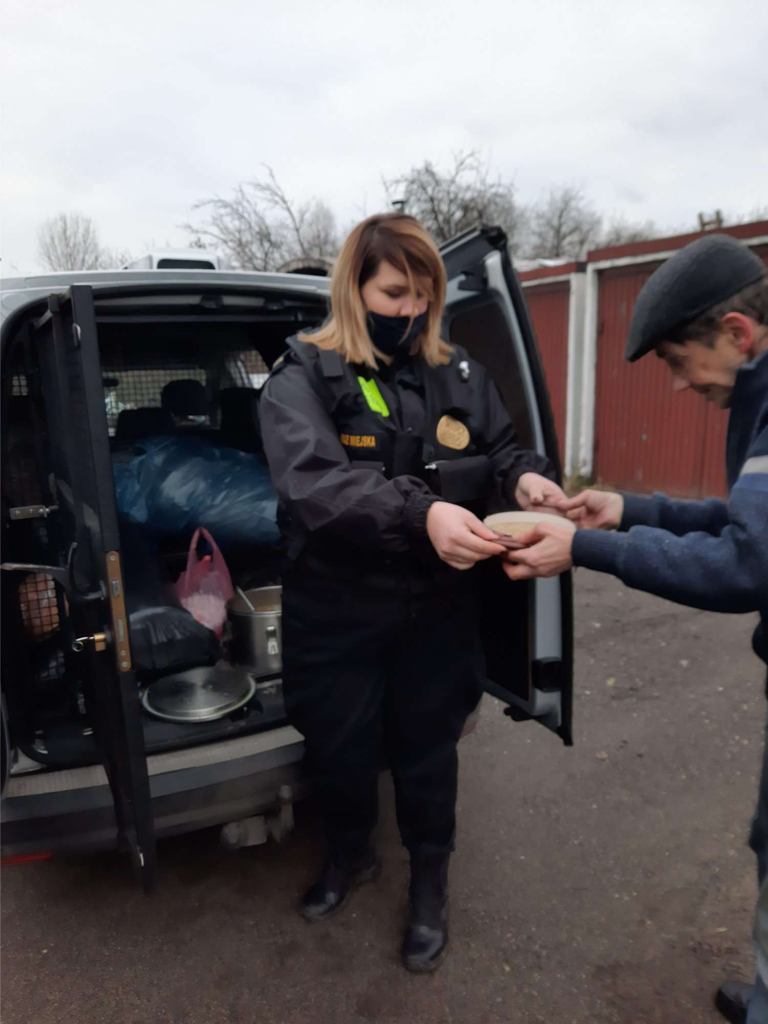 Strażnicy miejscy po raz kolejny uczestniczą w akcji pomocy osobom bezdomnym na terenie naszego miasta. Wraz z członkami Stowarzyszenia Inicjatyw Lokalnych Nasze Mysłowice odwiedzają siedliska osób bezdomnych dostarczając im ciepłe posiłki, odzież, a także koce i kołdry. Obiady dostarczane są również do miejsc zamieszkania osób, które korzystają z pomocy Stowarzyszenia.