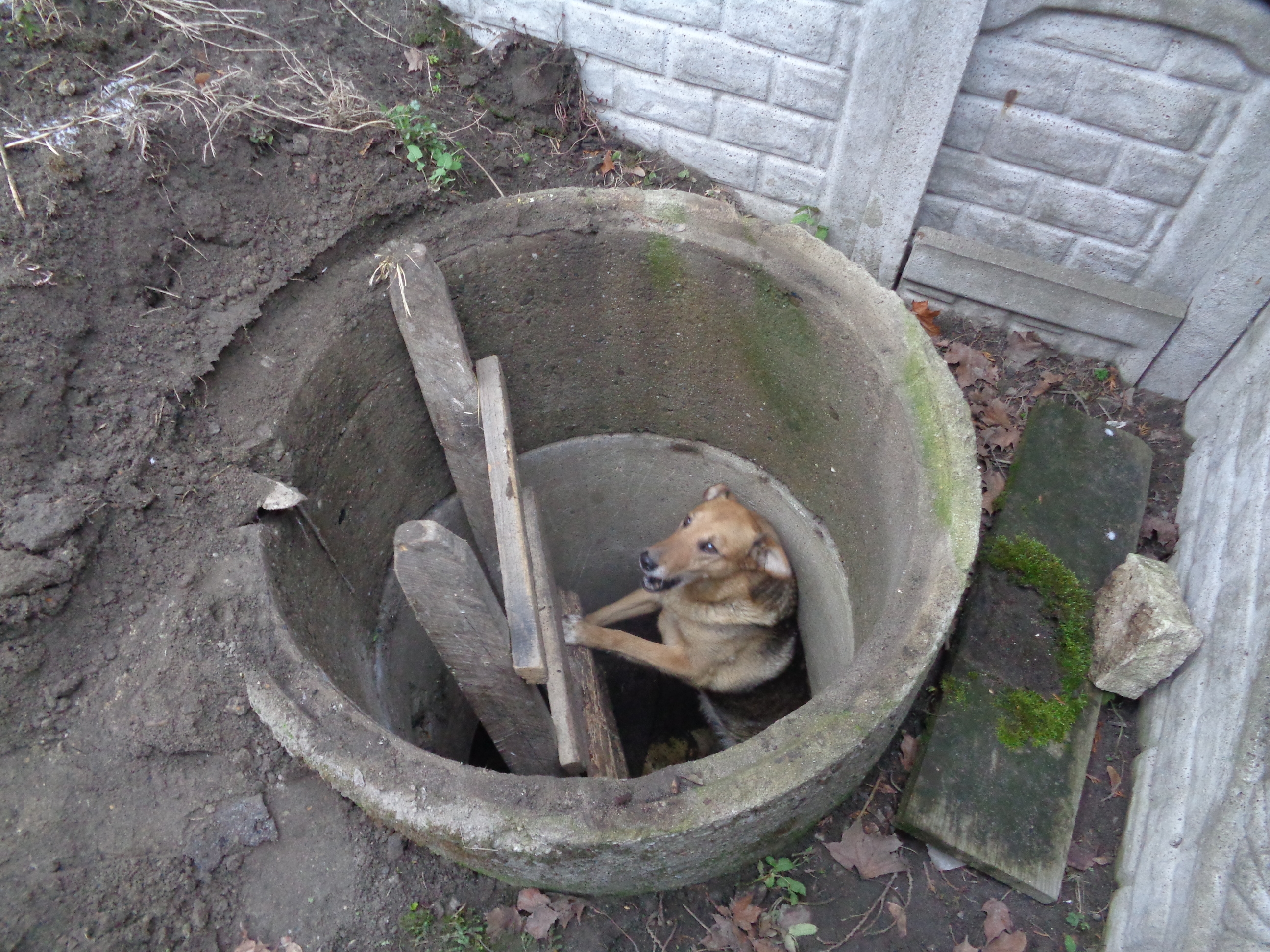 W dniu 20.11.2018 r. około godziny 8:00 dyżurny skierował mnie wraz z partnerem na interwencję w rejon dzielnicy Kosztowy, na ulicę Kosztowską gdzie według zgłoszenia pies wpadł do niezabezpieczonej studzienki kanalizacyjnej. Właściciele z racji wieku nie byli w stanie samodzielnie go wyciągnąć. Na miejscu zastałam wystraszonego psa uwięzionego w studzience o głębokości około 2,5 m. Weszłam do studzienki i z pomocą partnera wyjęliśmy czworonoga. Interwencja zakończyła się pomyślnie i pies nie doznał żadnych obrażeń, a właściciel w naszej obecności zabezpieczył studzienkę. Kolejny dobry dzień 🙂