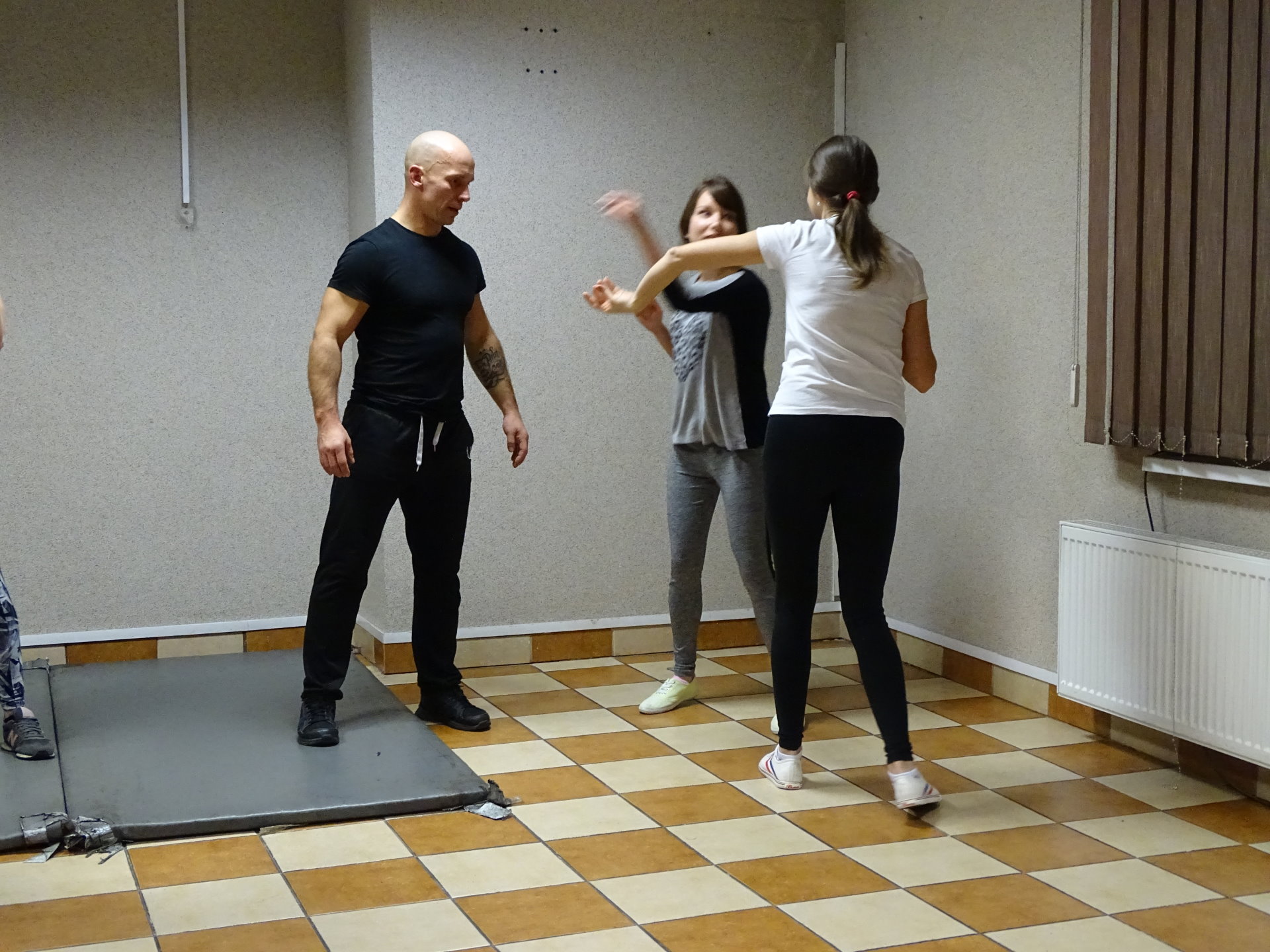 Następnie uczestniczki zajęć w towarzystwie Kierownika Referatu Profilaktyki i Ochrony Środowiska Beaty Kostrzewa zapoznały się z naszą komendą i programami jakie realizujemy dla dorosłych i najmłodszych. Po części teoretycznej przyszedł czas na zajęcia praktyczne. Każda kursantka uczyła się kontrolowanego upadku oraz skutecznego odparcia bezpośredniego ataku, poprzez zastosowanie odpowiednich chwytów i dźwigni. W czasie kolejnych zajęć uczestniczki poznają nowe chwyty i techniki, a w kolejnym miesiącu zajęcia polegać będą na utrwalaniu zdobytych umiejętności.