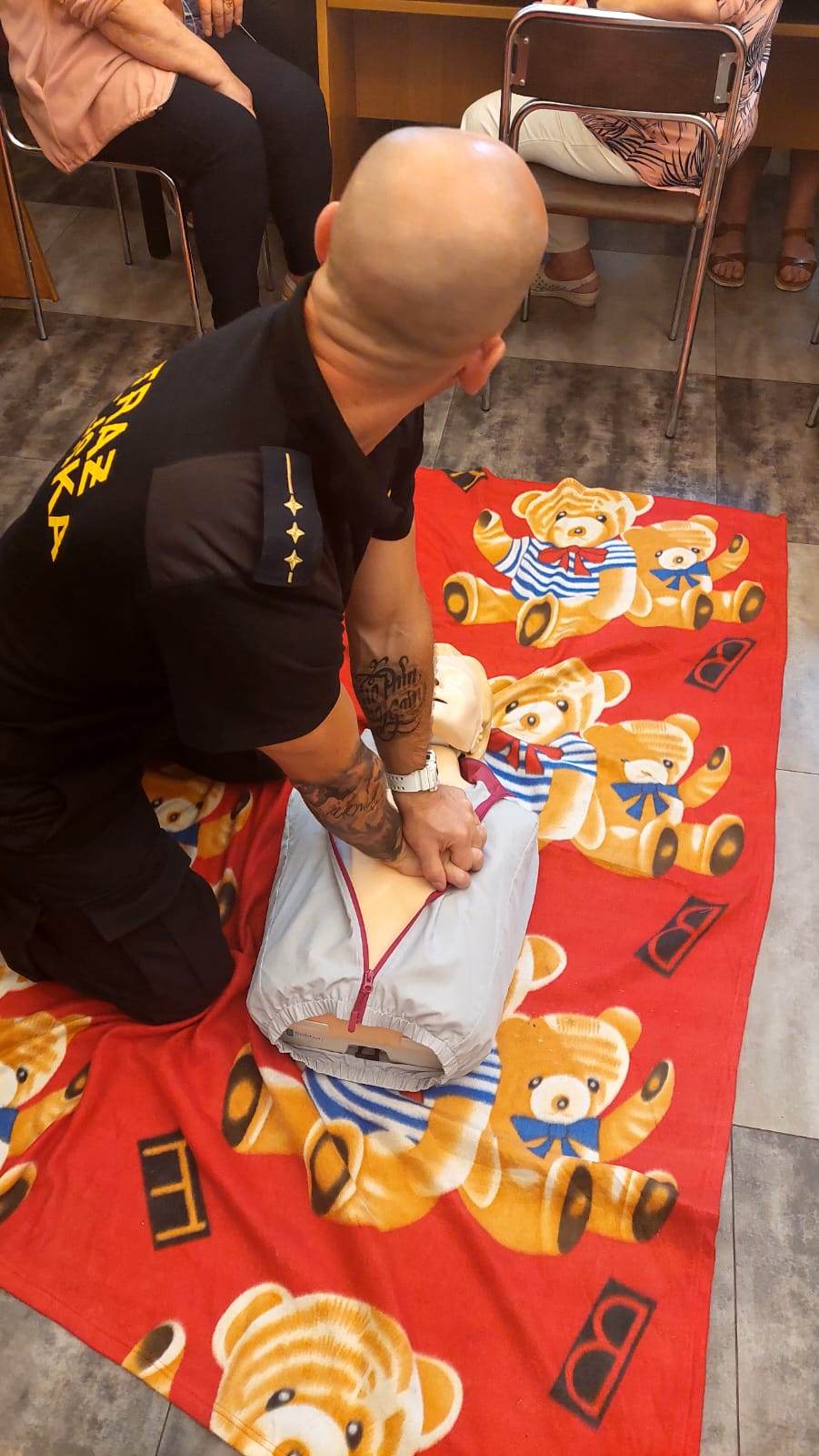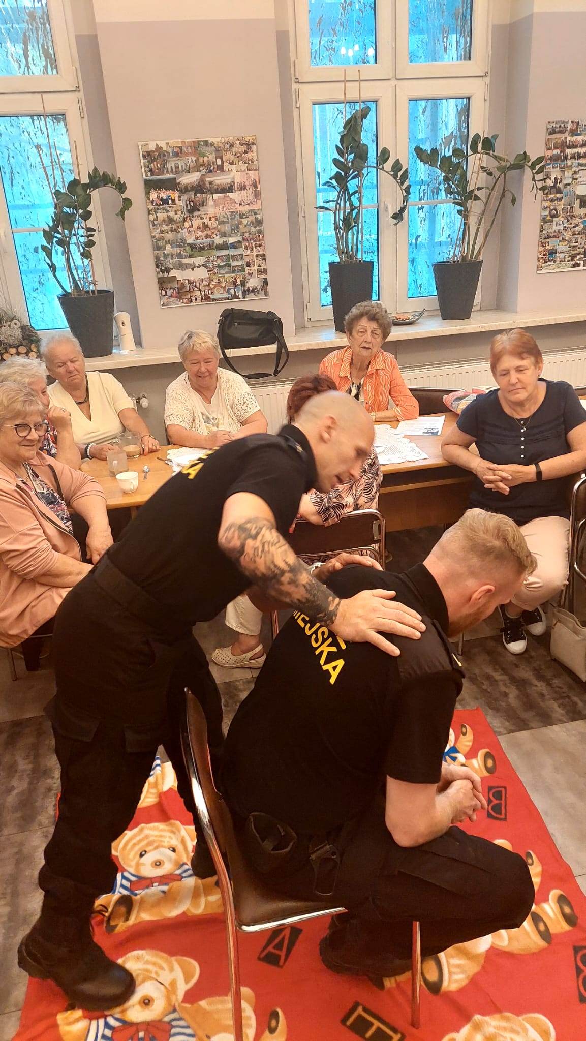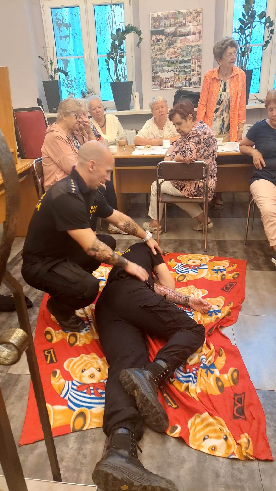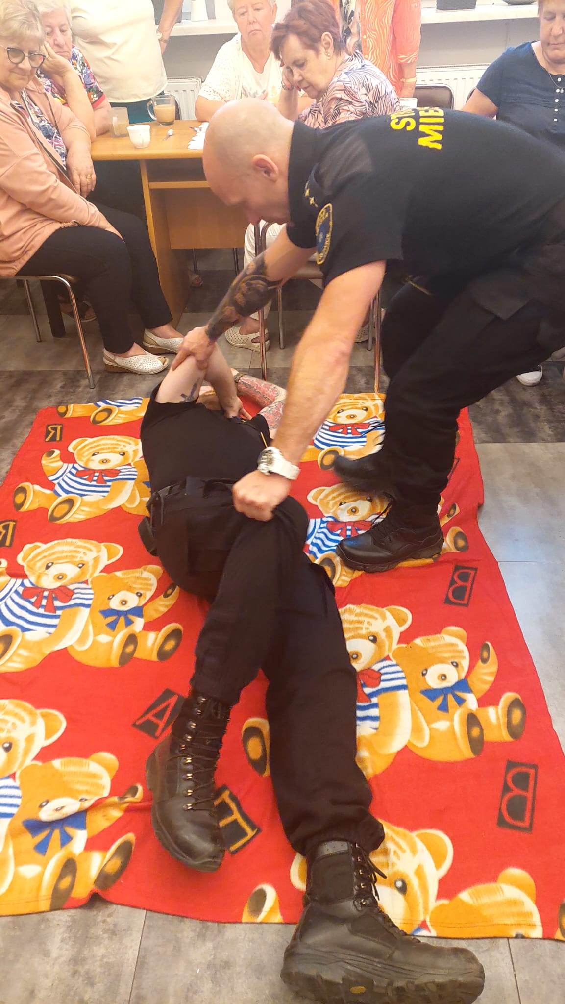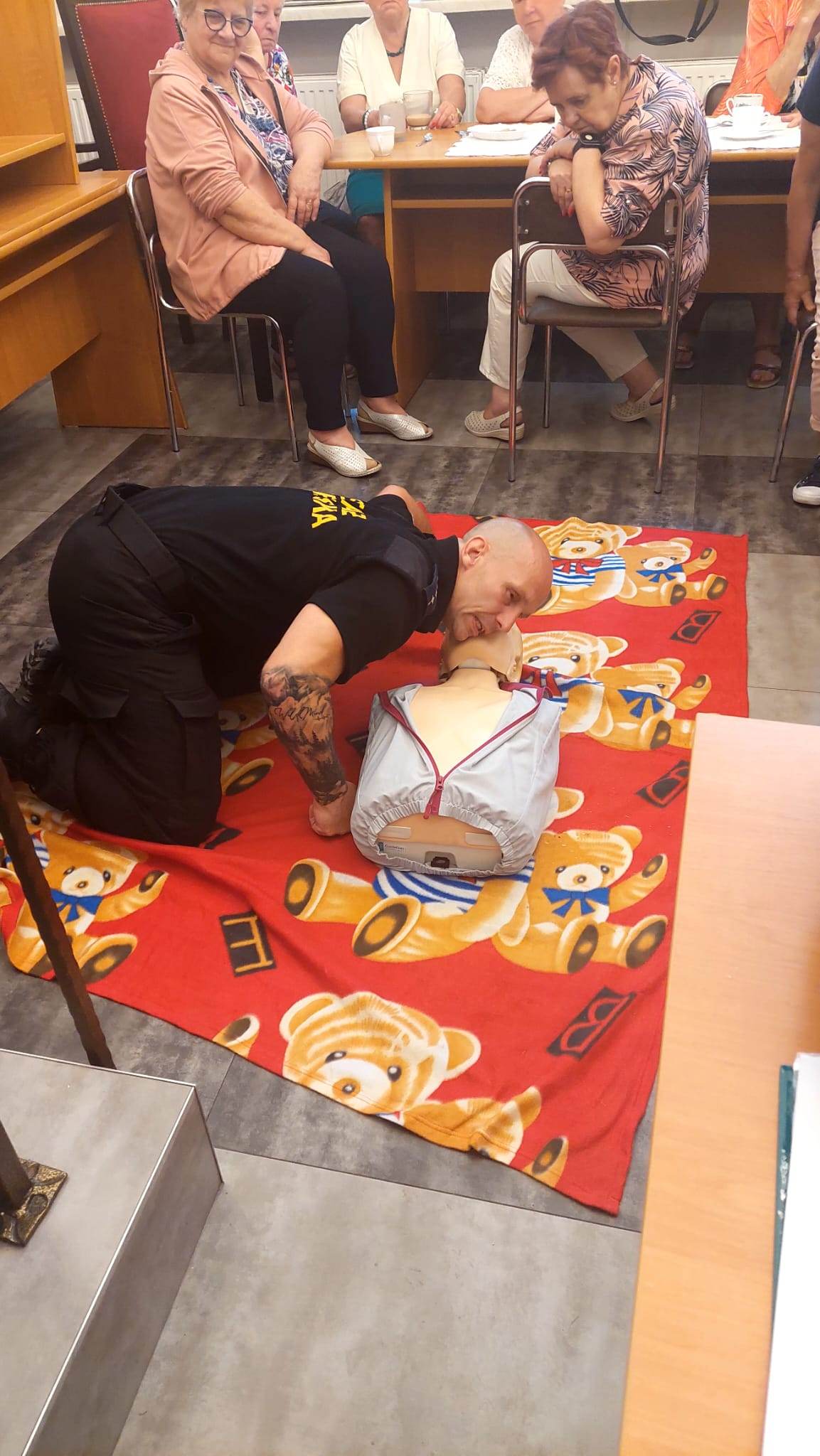 Główne zagadnienia szkolenia obejmowały pozycję bezpieczną ustaloną, resuscytację krążeniowo-oddechową oraz pomoc osobom, które doznały zadławienia się lub zasłabnięcia. Po szkoleniu, każdy z seniorów otrzymał od Strażników mini apteczkę.